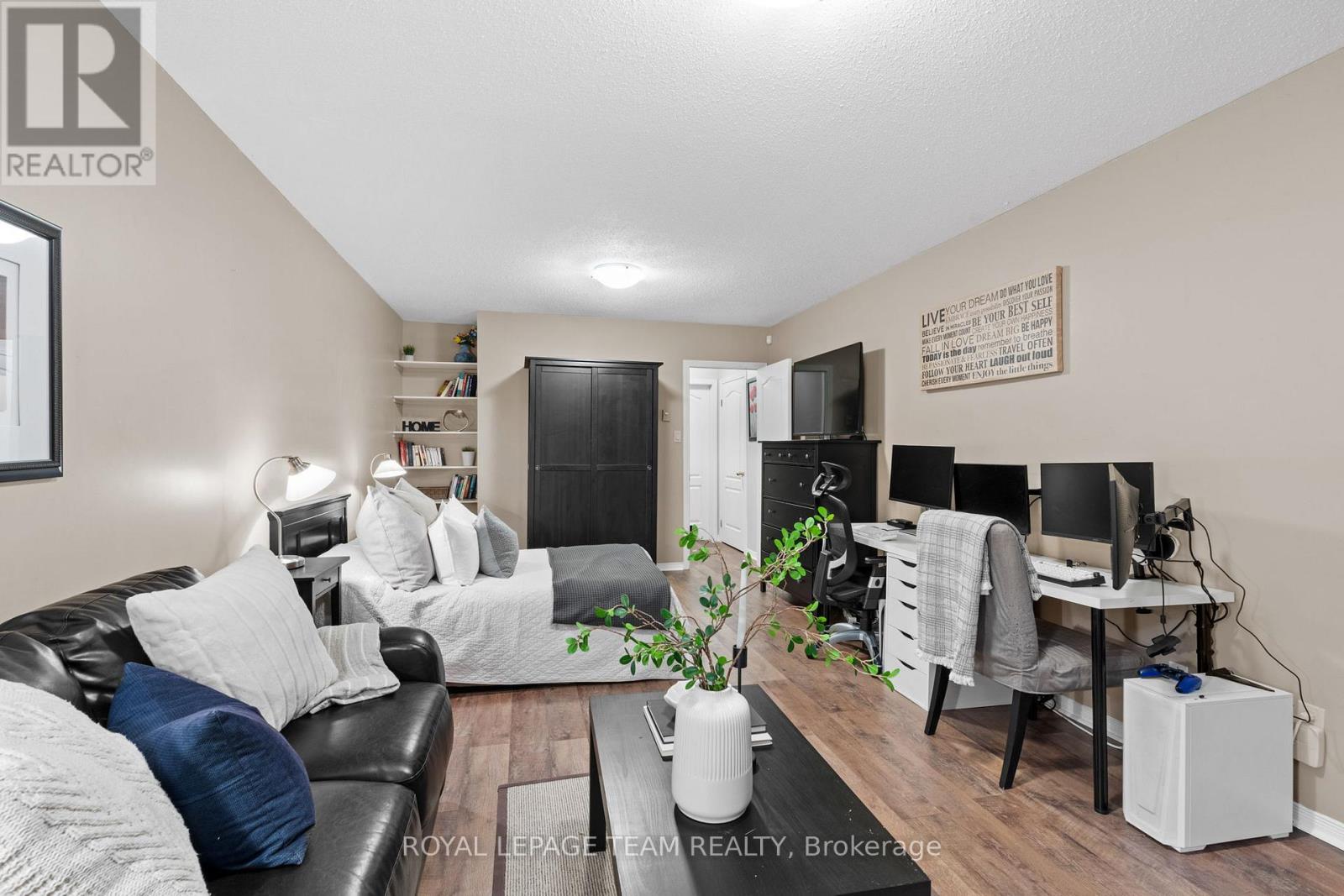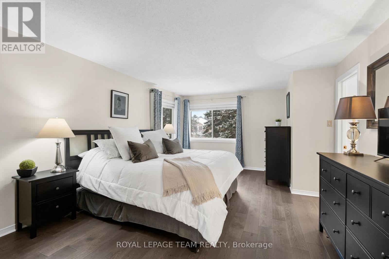 Open House Sunday, January 18th 2-4pm. Welcome to this beautifully updated end-unit condo townhouse in the highly sought-after Centrepointe neighbourhood. Surrounded by mature trees, this bright and private home offers a peaceful setting with added natural light-an ideal retreat at the end of the day. The spacious layout features four bedrooms, including three on the upper level and a full bedroom on the main floor, perfect for guests, a home office, or multigenerational living. The oversized primary bedroom offers a comfortable retreat with plenty of space to unwind. Hardwood flooring flows throughout, creating warmth and continuity, while the updated kitchen offers a functional layout with a convenient breakfast bar-ideal for casual meals, homework, or morning coffee. Renovated upstairs bathrooms add modern comfort and style, enhancing the home's turnkey appeal. Enjoy cozy evenings by the electric fireplace in the living room or the wood-burning fireplace in the basement, offering warmth and versatility year-round. Thoughtfully updated and beautifully maintained, this calm and welcoming home allows you to simply unpack and enjoy. Ideally located just steps from Centrepointe Park, the library, transit, and close to shopping, schools, and recreation. Be sure to watch the video attached to this listing! (41864770)