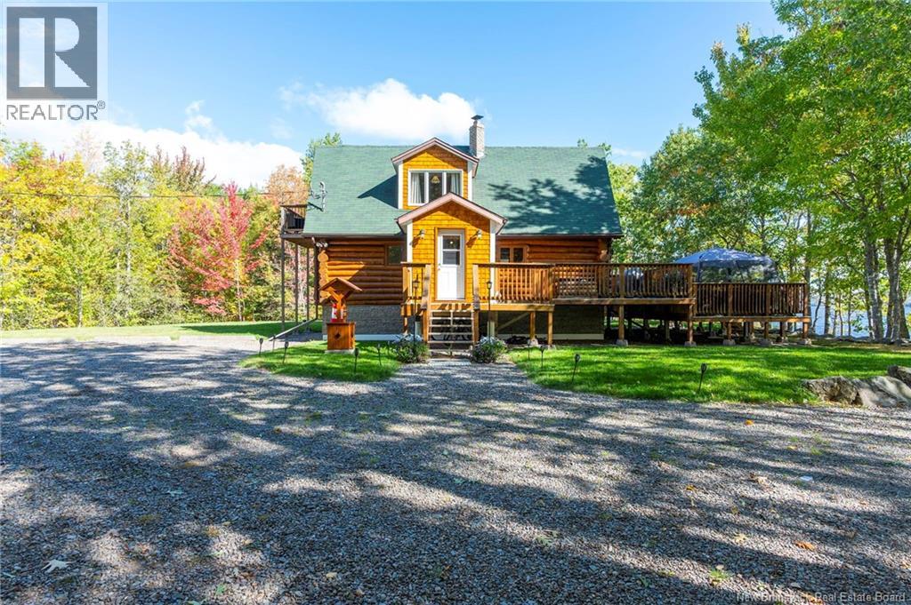 Nestled on the serene shores of Washademoak Lake, this stunning log home offers the perfect blend of rustic charm and modern comfort. With approximately 250 feet of private waterfront, complete with a boat slip, dock, and mooring, its an ideal retreat for boating, swimming, or simply enjoying breathtaking lake views. The property spans 2.25 private acres, providing space, seclusion, and natural beauty in every direction. Inside, the heart of the home is the impressive Great Room, where soaring 18-foot ceilings and warm log finishes create a welcoming space to gather. The home features four spacious bedrooms, including a primary suite with its own ensuite bath, making it perfect for family living or hosting guests. Two full bathrooms add convenience, while the open, airy layout ensures comfort throughout. Cozy evenings are easy to enjoy with two wood stoves, adding both charm and efficiency, complemented by electric baseboard heating and modern ductless heat pumps for year-round climate control. Outdoors, a large deck expands your living space, perfect for entertaining, relaxing, or soaking in sunsets over the water. New roof and Facia just installed. This property combines the best of lakefront living with the timeless appeal of a log home. Whether youre seeking a full-time residence or a seasonal getaway, this Washademoak Lake retreat offers the lifestyle youve been dreaming ofpeace, privacy, and a front-row seat to natures beauty. (29340922)