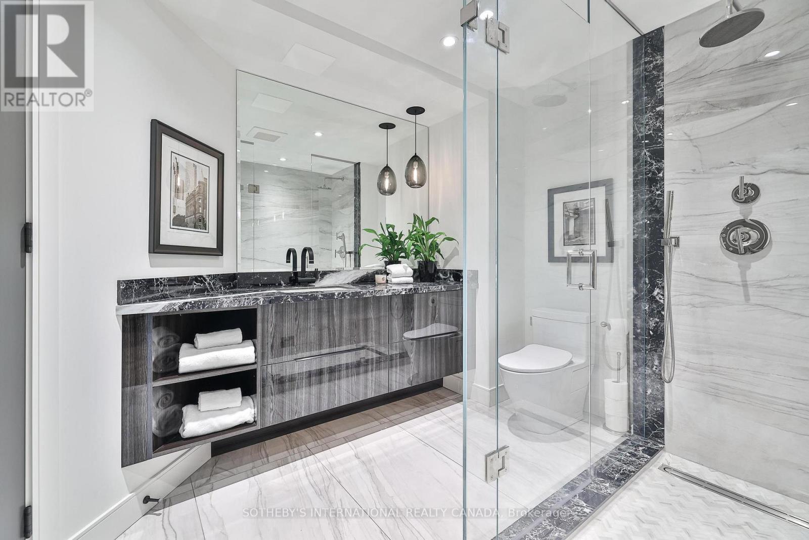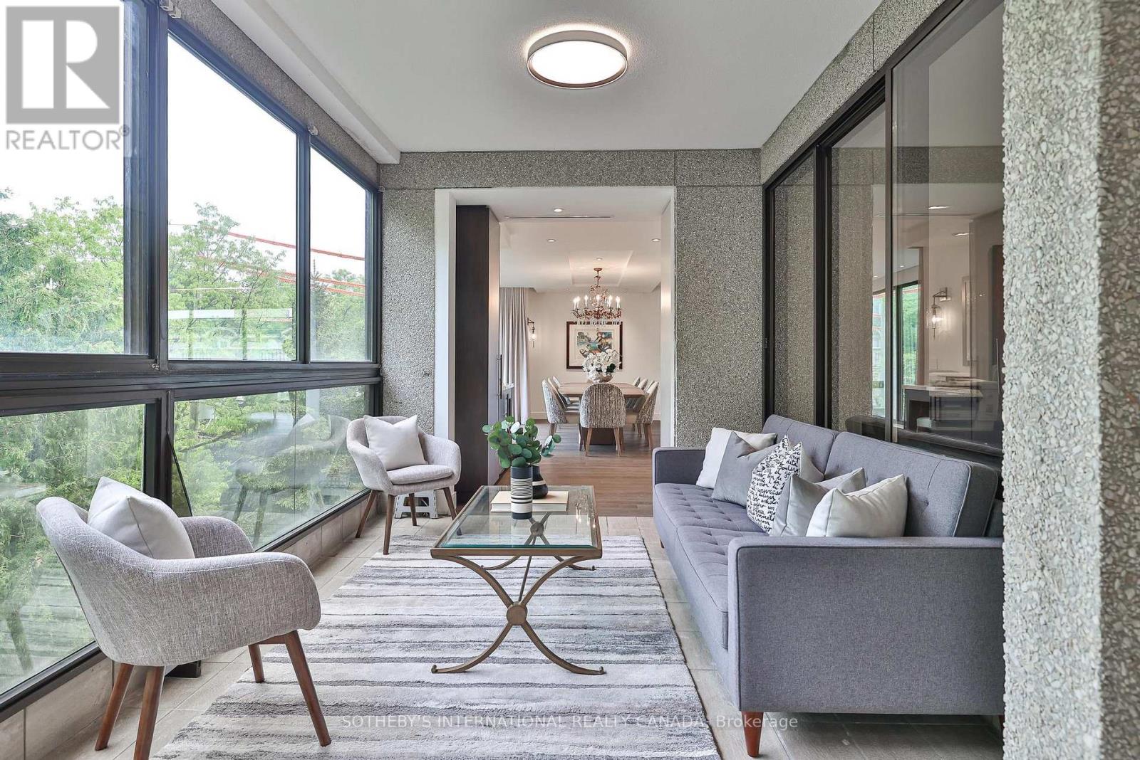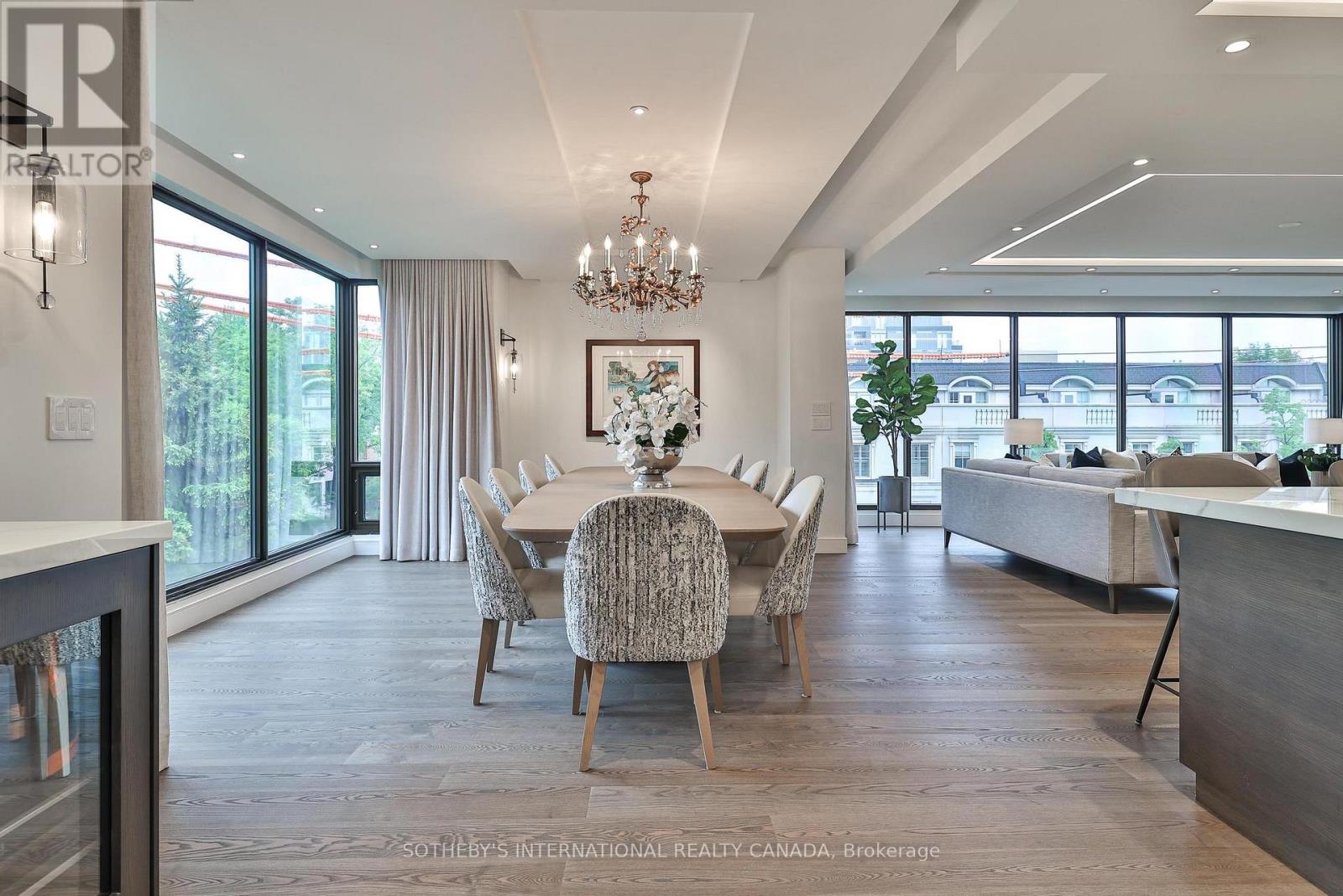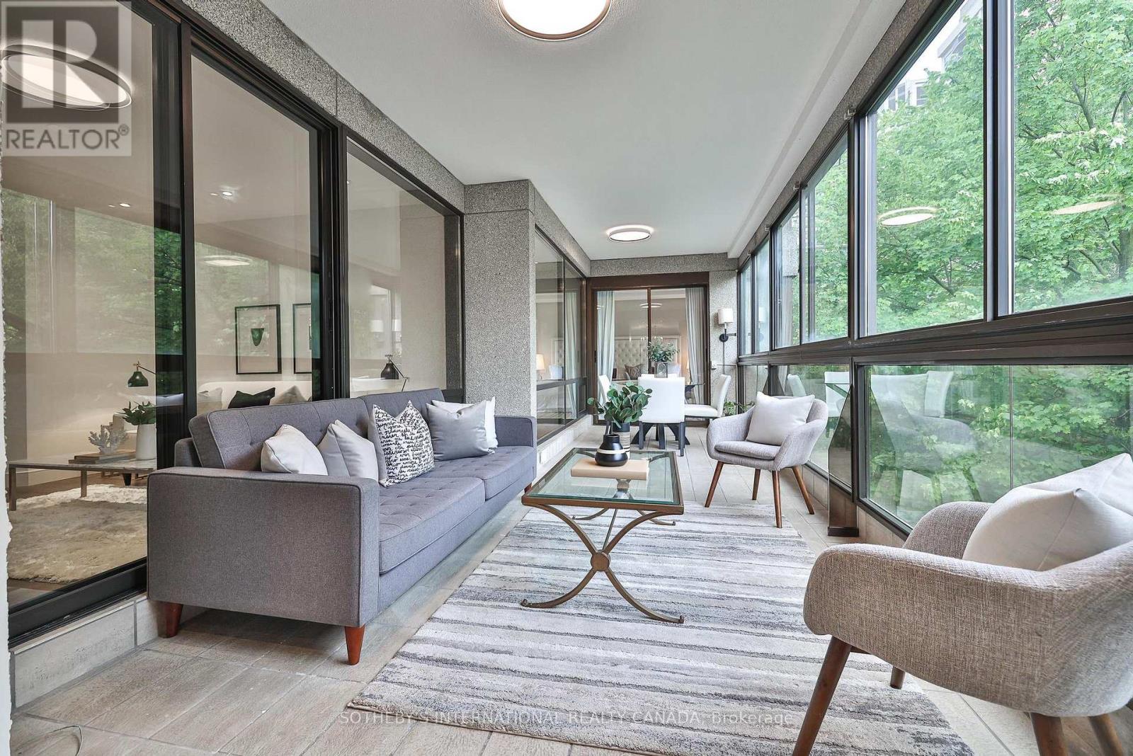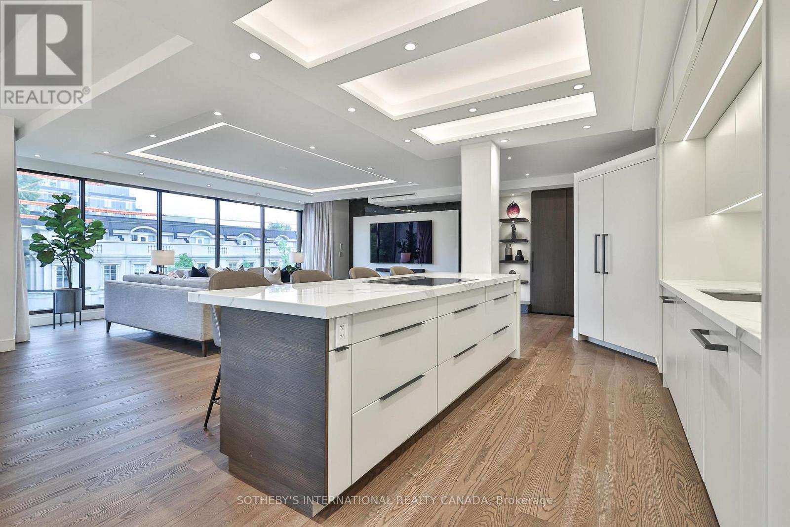 Welcome to Suite 405 at 342 Spadina Road, where luxury and comfort meet in the heart of Forest Hill South. This exquisite 2,534 sq. ft. condo including sunroom in a boutique 20-unit building has been completely reimagined, offering a modern, turnkey lifestyle for discerning buyers. As you step inside, you'll be captivated by the abundant natural light streaming through floor-to-ceiling windows. The open-concept layout showcases breathtaking views of downtown Toronto and lush treetops. European wide-plank hardwood floors, architectural ceilings with indirect lighting, & custom finishes create a sophisticated ambiance perfect for both entertaining and quiet evenings at home. The chef's kitchen is a showstopper with custom painted finish & rift-cut oak cabinetry, premium quartz counters and backsplash, and top-of-the-line Jennair appliances including a 36" induction cooktop, twin fridge/freezer columns, convection ovens, & an under counter dual temperature wine fridge. A large island, ultra-quiet Bosch dishwasher, indirect lighting & a sleek Jennair downdraft venting system add to the seamless functionality & clean sightlines. Relax in the luxurious living room featuring a stunning slab quartz feature wall, Evonik frameless electric fireplace, & floating oak shelves. The serene primary suite offers tree-top views, custom walk-in closet, spa-like ensuite featuring a Bain Ultra tub, heated floors, & premium Kohler fixtures. The sunroom/terrace provides a tranquil 240 sq. ft. retreat, perfect for morning coffee or evening cocktails. Additional highlights include a bright laundry room, two owned parking spaces, an owned locker room, & building amenities like such as a concierge, party room, gym, EV-ready charging capability & convenient above grade visitor parking. Enjoy an unbeatable location, steps from Forest Hill Village, transit and top private schools. Suite 405 is an invitation to live life beautifully in one of Toronto's most coveted neighbourhoods. (41865660)