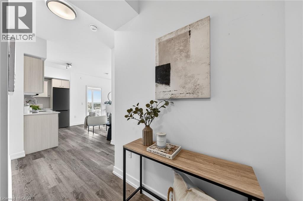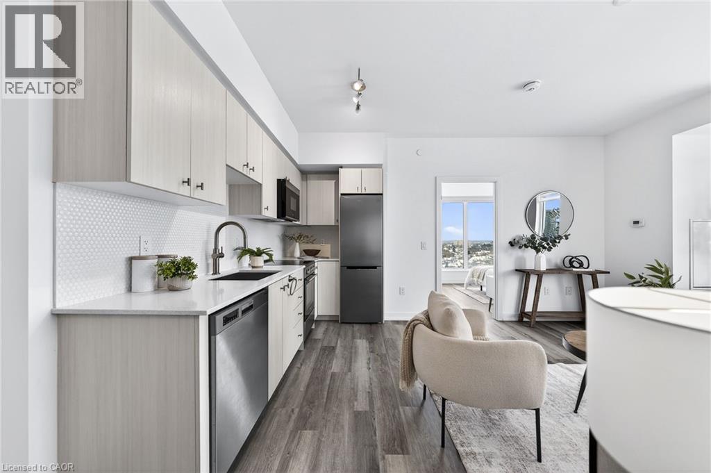 The largest two-bedroom floor plan in the building, this bright corner suite offers unobstructed views from your private balcony, 2 bedrooms, 2 full bathrooms, 1 parking space, and a locker. Enjoy expansive views from every room, including the kitchen, complemented by custom blinds and upgraded flooring throughout. Bell Internet, heat, and air conditioning are included in the condo fees. Centrally located in the Innovation District, Station Park is home to some of the most sought-after amenities in the region. Residents enjoy access to a two-lane bowling alley with lounge, premier lounge areas with bar, table tennis and foosball, private dining room with kitchen, landscaped outdoor cabanas with BBQs, dog washing station, spa and hot tub, fully equipped fitness centre, yoga/Pilates studio, and Peloton studio. Additional conveniences include a concierge desk, private bookable dining spaces, parcel and food delivery services, smart parcel locker system. (70003960)