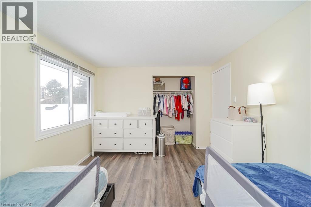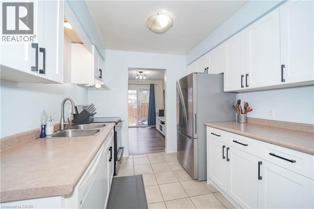 Tucked into a well-managed condo enclave in Waterloo, this stylish 2-storey townhouse offers the perfect blend of functionality and modern comfort. A welcoming tile foyer leads to a bright kitchen featuring stainless steel appliances and a clean, efficient layout ideal for everyday cooking. The open-concept living area with laminate flooring is anchored by a walk-out to a private yard—ideal for hosting or simply enjoying the outdoors in warmer months. Upstairs, you’ll find two generously sized bedrooms, both with laminate flooring and large windows that invite abundant natural light. The primary bedroom boasts a walk-in closet for added convenience, while the second bedroom offers flexibility for guests, a home office, or a nursery. A 3-piece bath on the second level complements the main floor powder room, providing function across both levels. Additional highlights include central air conditioning, gas-forced air heating, ensuite laundry, and a built-in garage with Electric Vehicle Charger installed and with a private driveway providing two parking spaces in total. With maintenance fees covering common elements and building insurance, this unit presents a low-stress ownership opportunity. Positioned in a south-facing exposure, the home captures all-day light and is conveniently located near King Street and Conestoga Parkway, offering easy access to local amenities, shopping, and transit. Whether you're looking to enter the market, downsize smartly, or invest in a desirable area, this turn-key unit offers lasting value in a sought-after Waterloo location. (70005978)