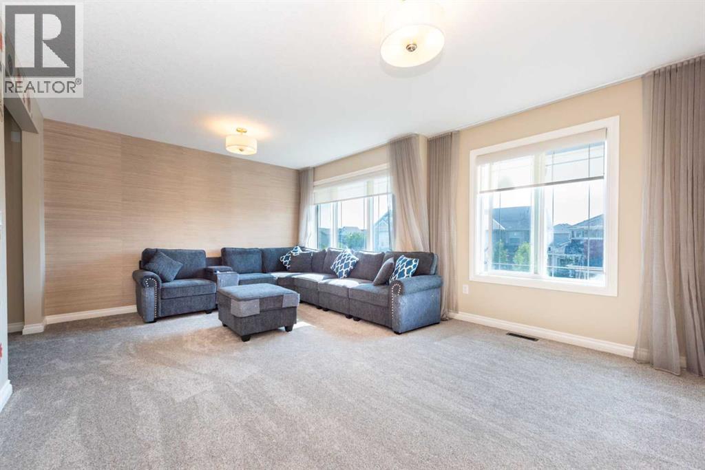 This former Genesis show home is fully upgraded and ideally located in Bayside. The main floor boasts an open floor plan with spacious principal rooms, pristine engineered high-end laminate flooring, a beautifully designed kitchen with full-height cabinets, striking granite countertops, and high-end stainless steel appliances, plus a main floor office that can serve as a fourth bedroom. Upstairs, you’ll find an expansive bonus room, a large primary suite complete with a 4-piece ensuite and walk-in closet, two generous secondary bedrooms, and a convenient laundry room with extra cabinetry. Designer wallpapered feature walls add character throughout the home, while the basement is insulated, wired, and drywalled—ready for your personal touch. Additional highlights include upgraded window coverings, central A/C, a large deck with a privacy screen, new vinyl and wood fencing, and a beautifully maintained yard with underground sprinklers. (31487266)