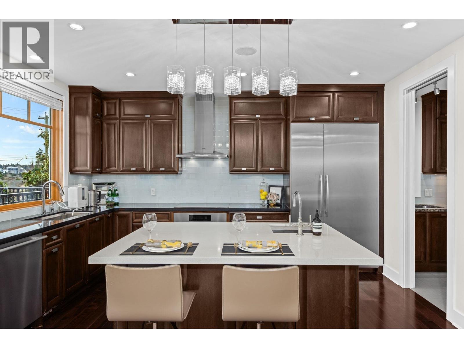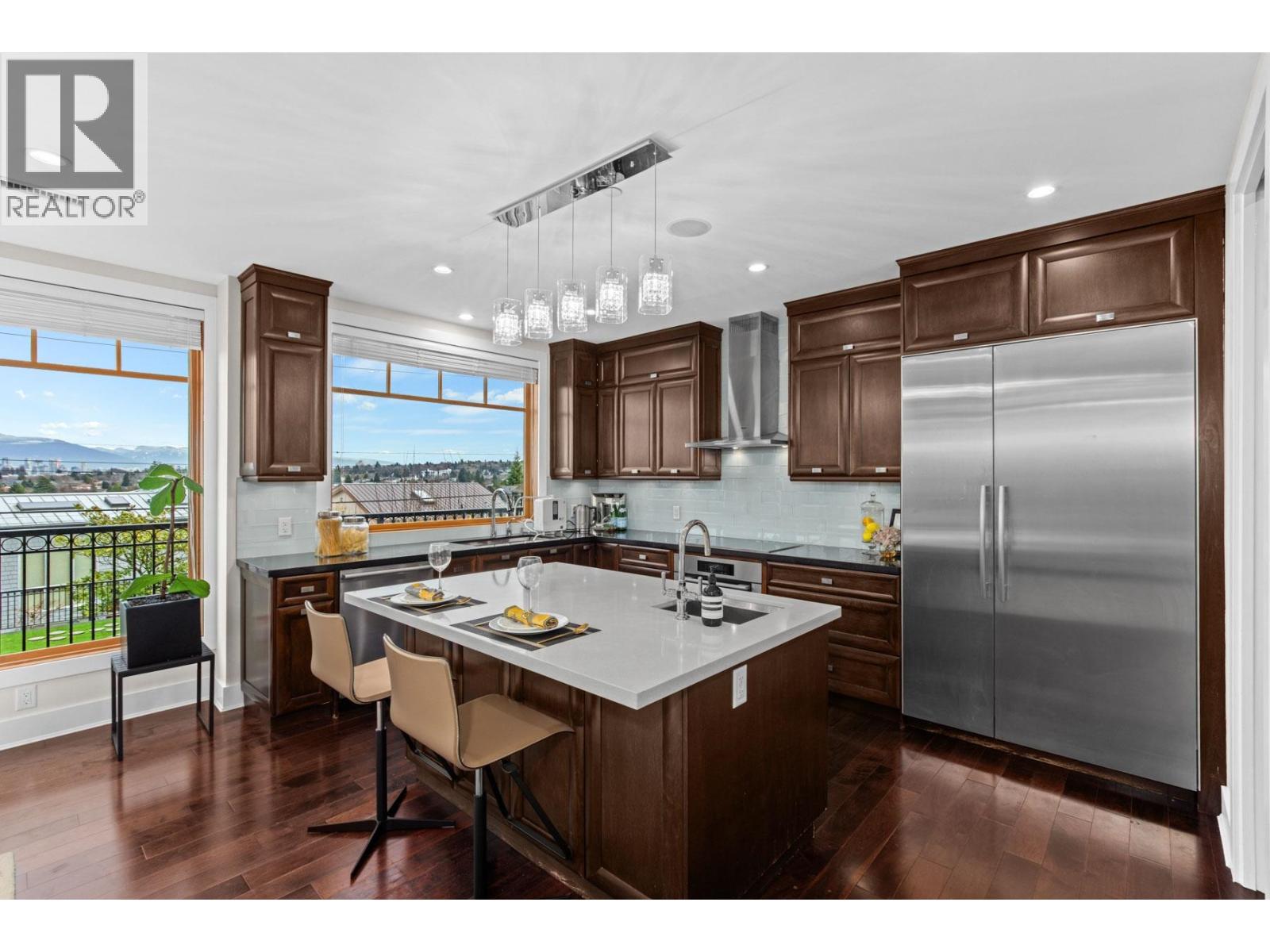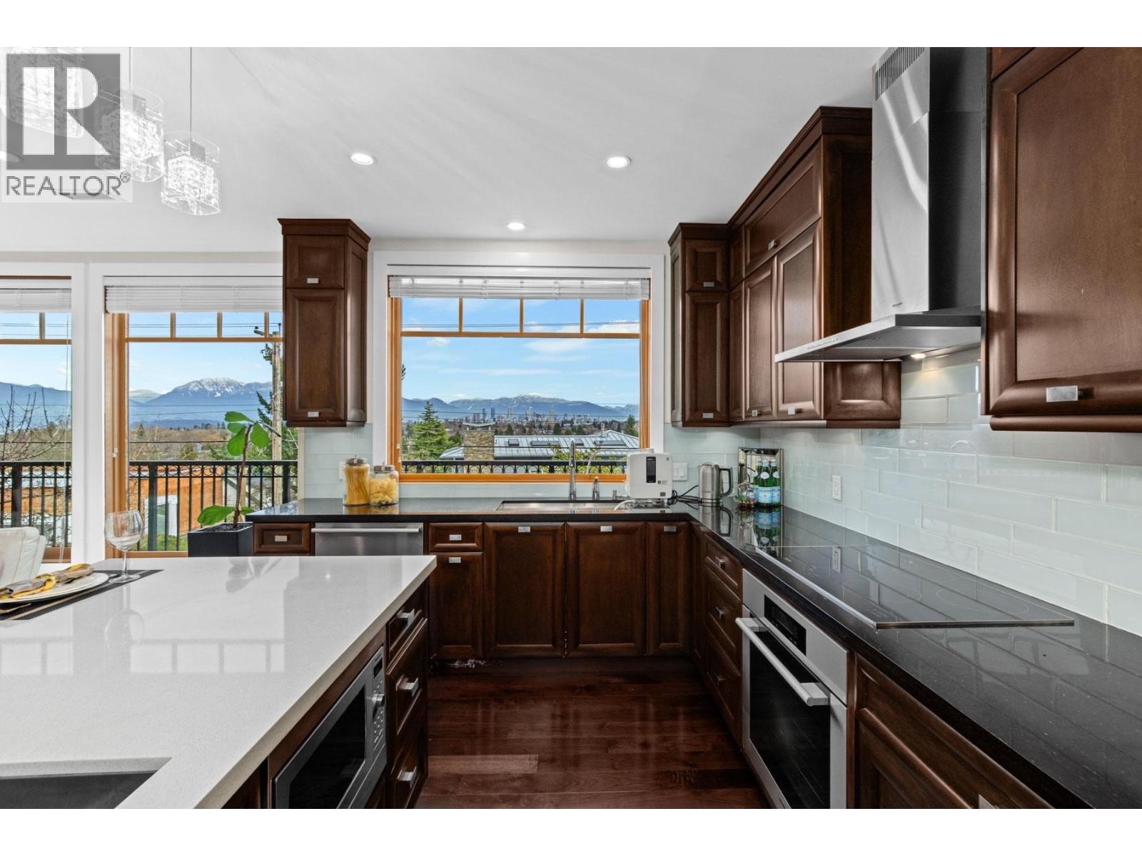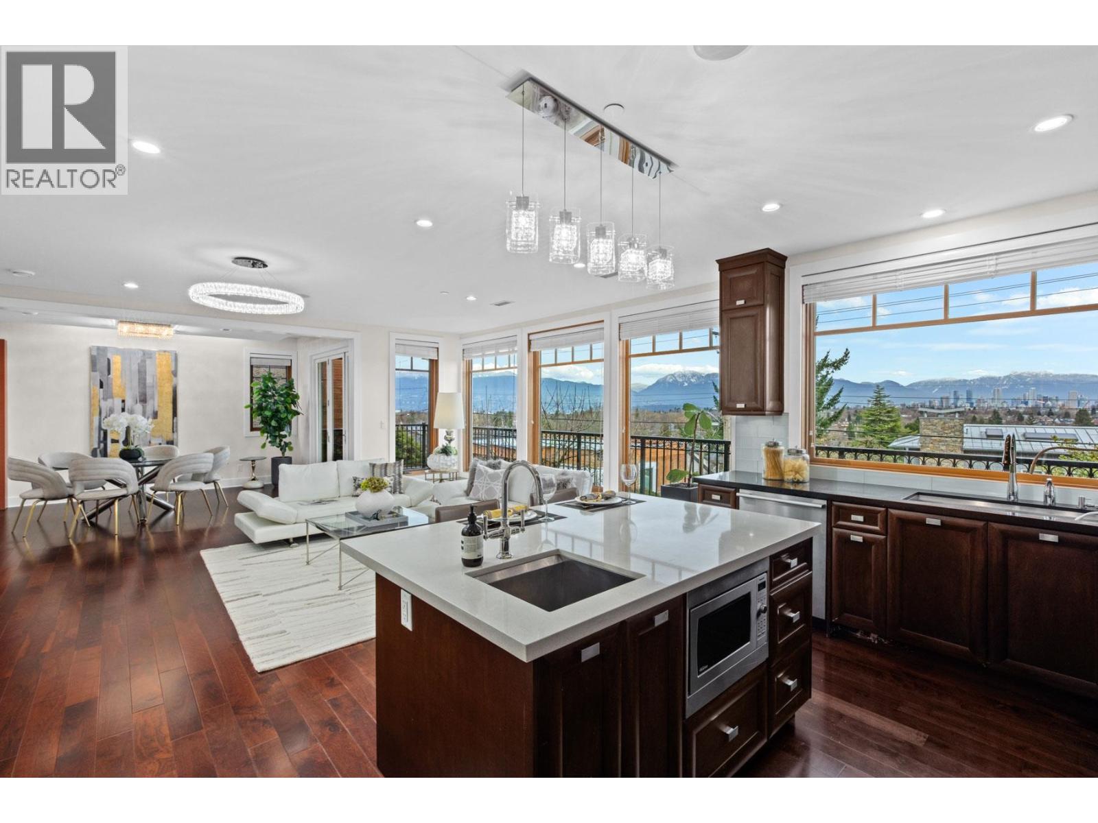SPECTACULAR TOP OF THE HILL Water, Downtown, City and Village VIEW!!! Modern, Sleek & Mint Condition. Amazing three level split house with all levels above ground! Stunning on a nearly 6600sq ft lot, this home offers featuring functional layouts. Entertainment sized living and OPEN VIEW for family room, dining and kitchen. Total of 5 bedrooms and 5 baths, massive rec room and soaring 14ft height theatre to entertain your guests. Extended playground back yard. Rooftop deck with a hot-tub to enjoy the breathtaking views! Top school catchment- P.W. , Kitchener, St George's, Crofton and close to UBC. OPEN HOUSE: Sun (Jan 18) 2-4pm. (32286146)