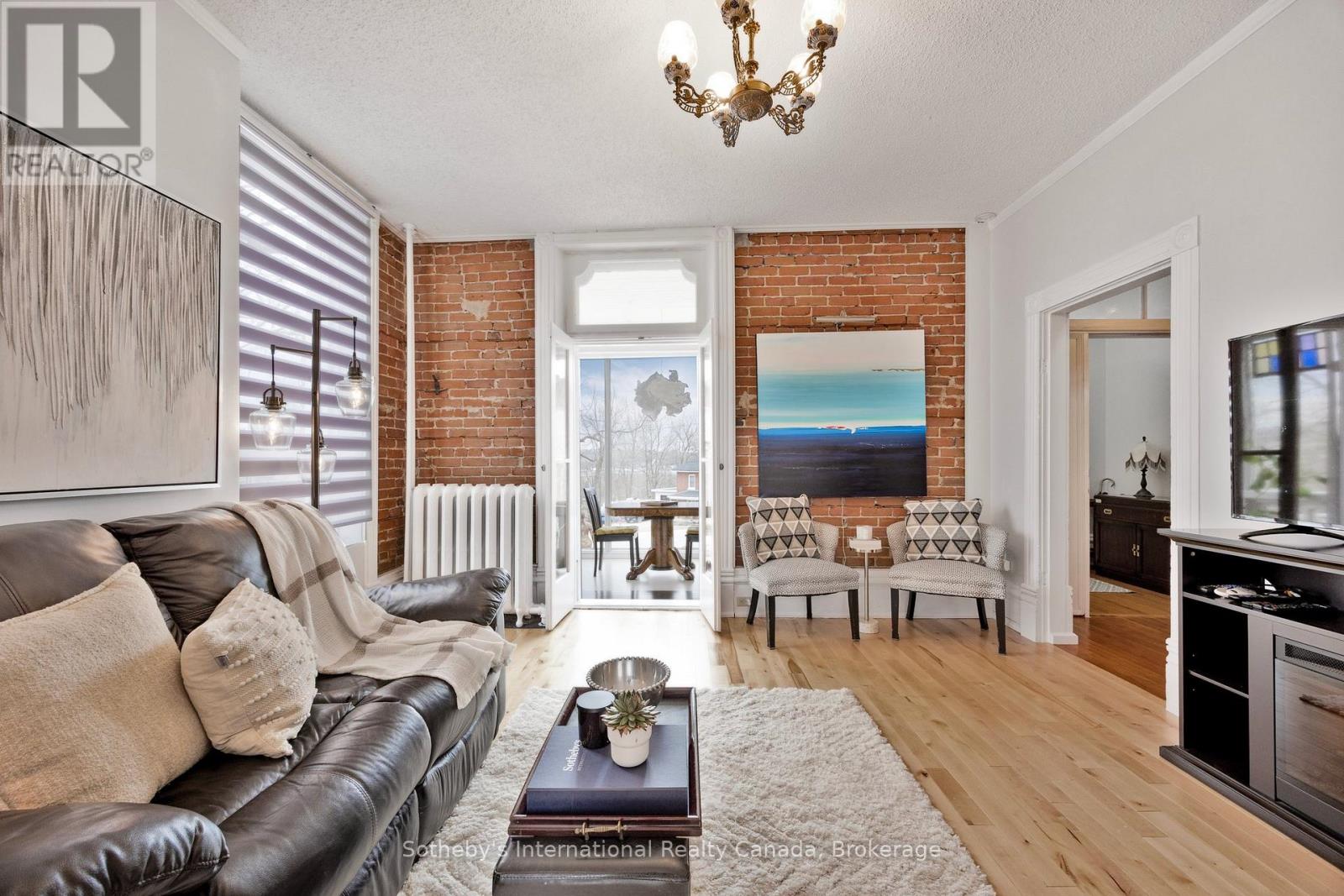 Perched on a hilltop in the heart of Penetanguishene, 26 Robert Street East is an exquisitely restored Edwardian century home offering timeless elegance, modern comfort, and exceptional privacy. Set on an impressive 118 ft x 224 ft lot, this rare property blends historic charm with thoughtful, high-quality updates.Inside, the home showcases over a century of craftsmanship with soaring ceilings, reclaimed hardwood floors, and exposed brick accents throughout. The updated kitchen features dramatic ceiling height, a walkout to a sun-filled deck, and seamless access to a walk-in pantry and laundry room-designed for both refined living and effortless entertaining. A formal dining room with a decorative fireplace and large windows creates an inviting atmosphere, while the cozy family room opens to a bright sunroom with elevated views across town. The upper level offers three generously sized bedrooms and two beautifully updated 3-piece bathrooms. A finished attic provides over 700 sq ft of flexible living space, ideal for a home office, studio, or private retreat. Outdoors, the expansive grounds offer room to garden, entertain, or simply unwind, complemented by two detached garages perfect for storage, workshop space, or creative pursuits. Distinctive restoration details, including a custom fence crafted from the home's original storm windows, reflect the care and vision behind every element. Significant updates include a new roof, all new windows, and fully modernized electrical and plumbing systems, ensuring modern peace of mind within a historic setting. Located just minutes from Georgian Bay, waterfront parks, trails, and downtown Penetanguishene, this exceptional residence offers a rare opportunity to own a beautifully restored piece of Ontario's architectural heritage. (41867982)