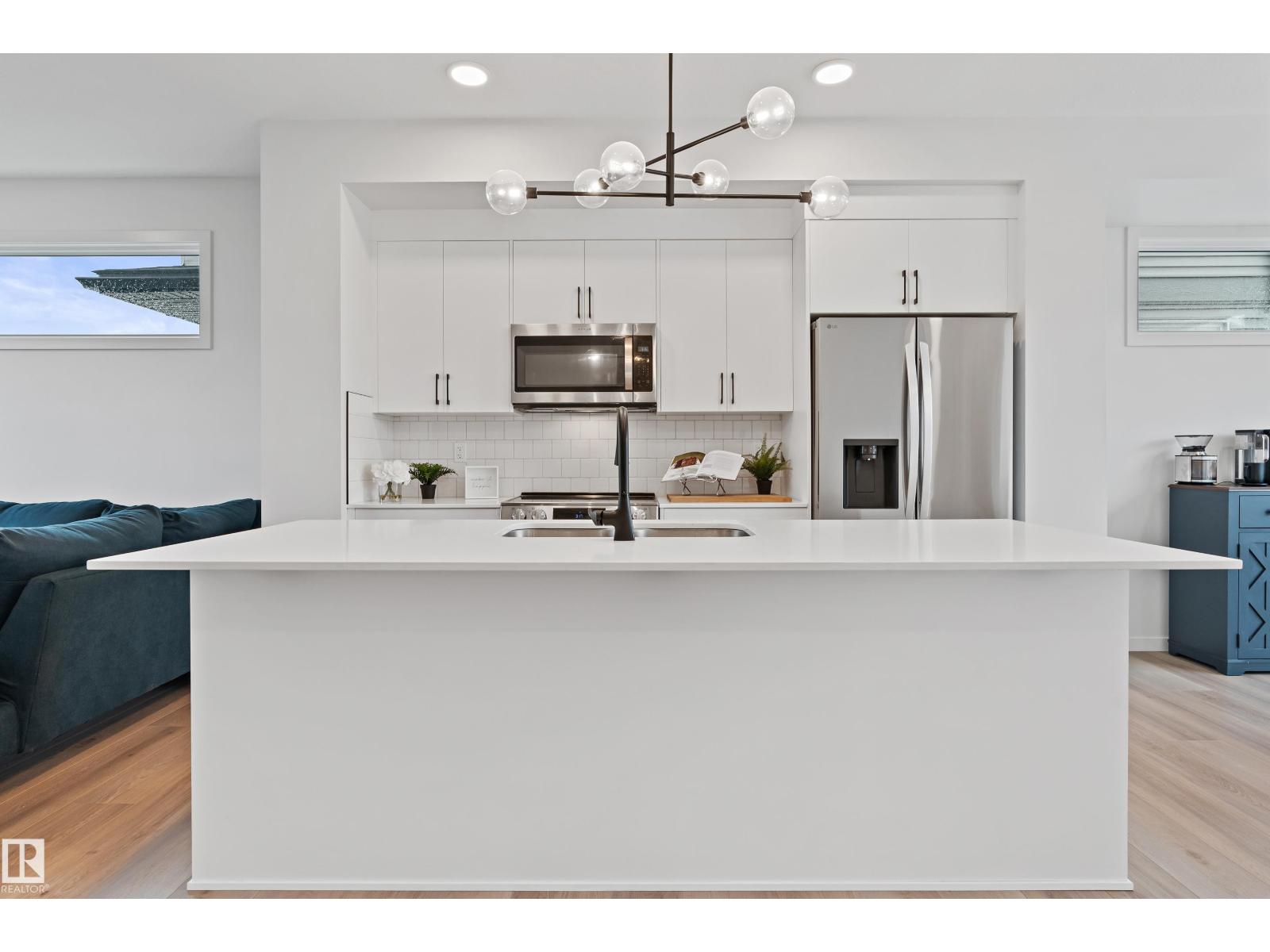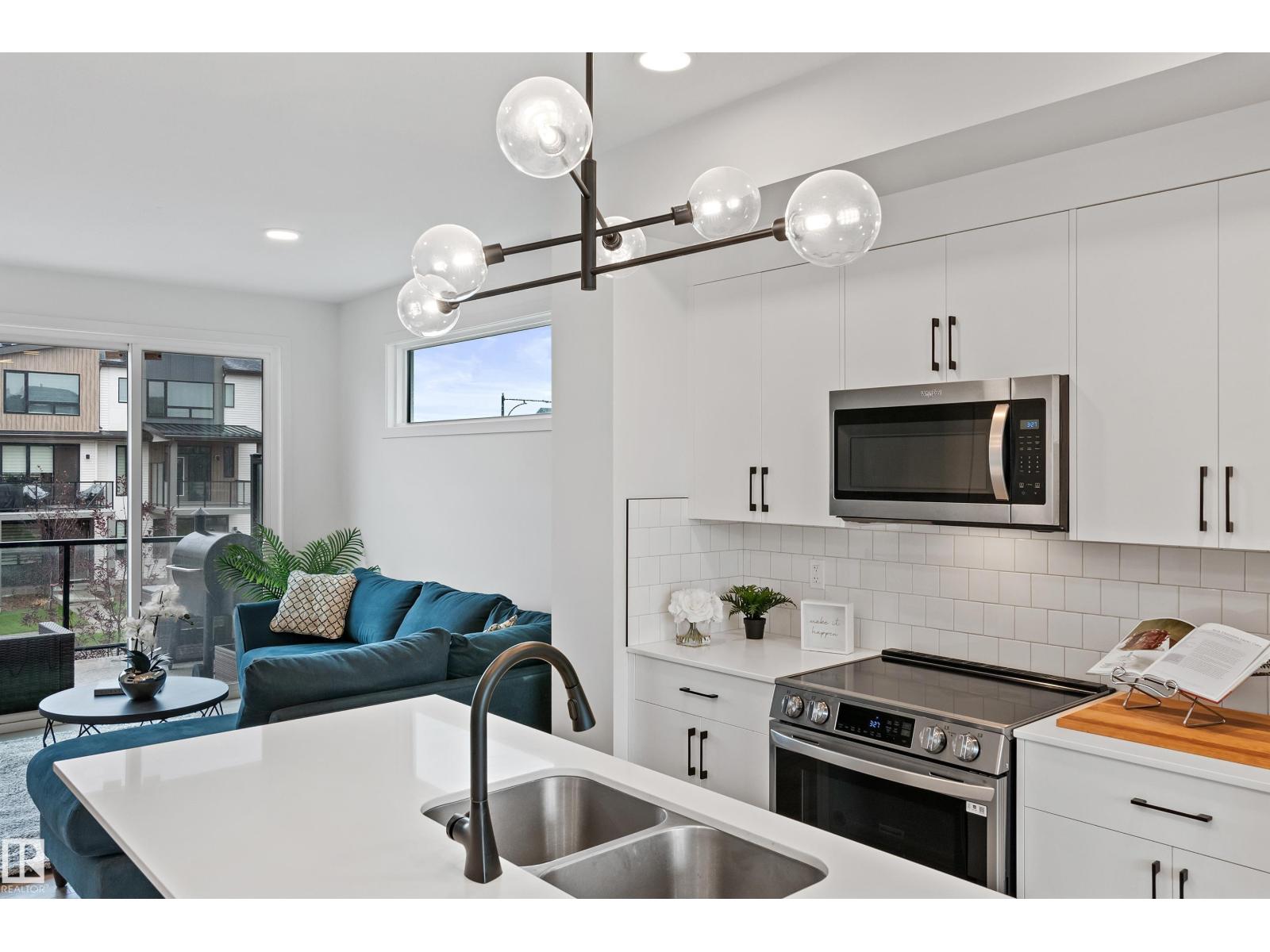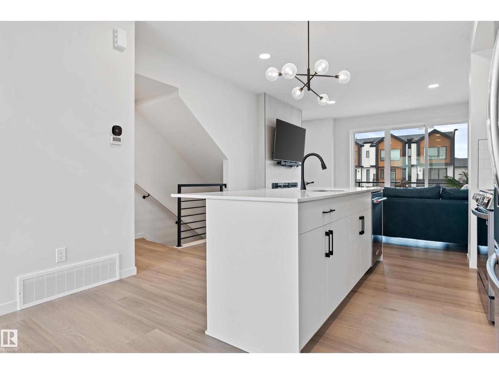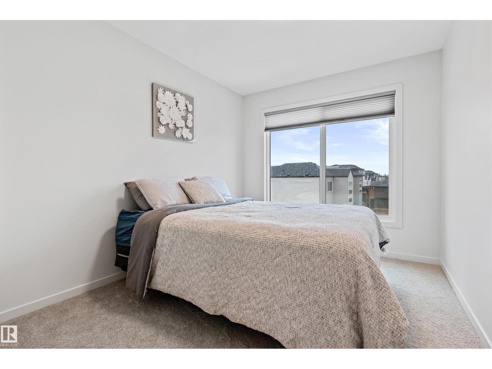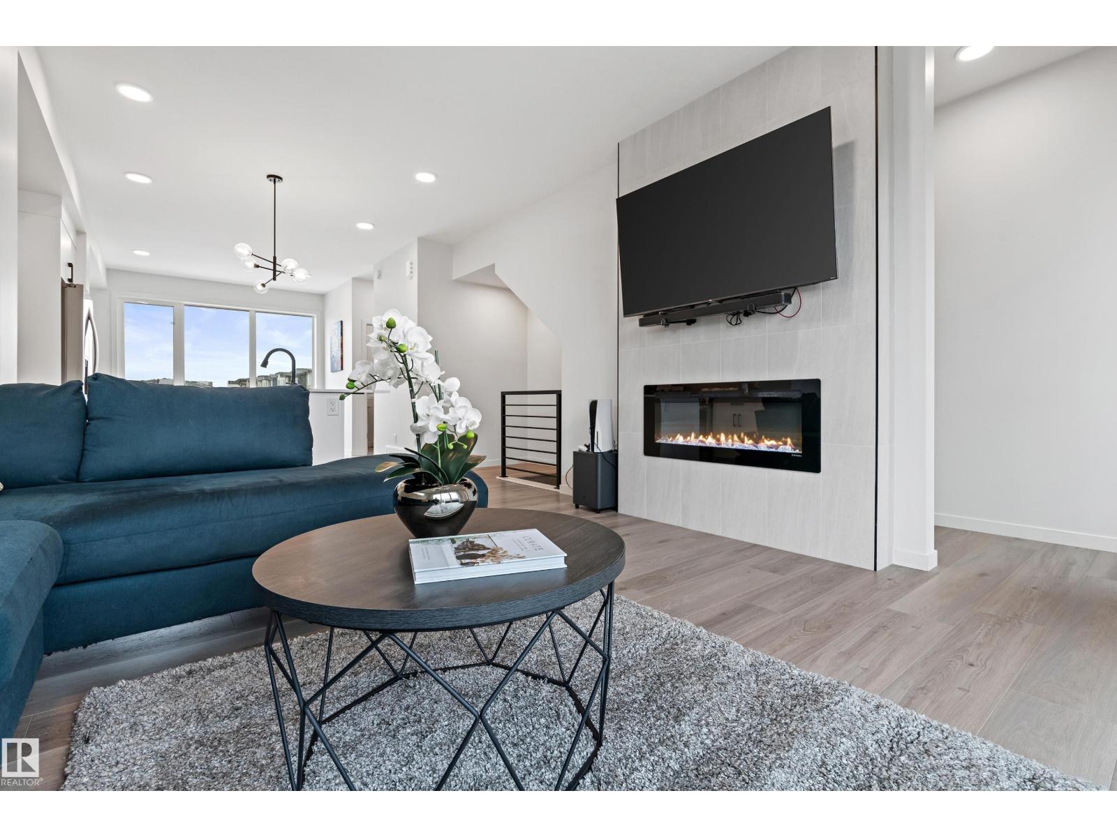 Effortless living meets modern design in this beautifully appointed 3-storey end-unit townhome. Natural light streams through oversized windows while 9-foot ceilings create an airy open-concept main floor anchored by a cozy fireplace—ideal for everyday comfort or entertaining. The sleek kitchen features quartz surfaces, induction cooktop, and stainless appliances. Step onto your private glass-railing balcony for morning coffee or evening relaxation under the stars. Upstairs, the primary suite offers a true retreat with walk-in closet, oversized shower, and motorized blinds. Two additional bedrooms complete the upper level, while a flexible entry-level room adapts to your needs—office, gym, or guest space. Practical perks: dual-zone air conditioning, double attached garage with driveway, and professional landscaping. Near parks, schools, shopping, and trails—this end-unit delivers single-family space and privacy with townhome ease. All with NO CONDO FEES! (33679738)