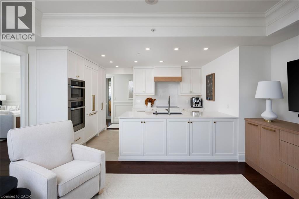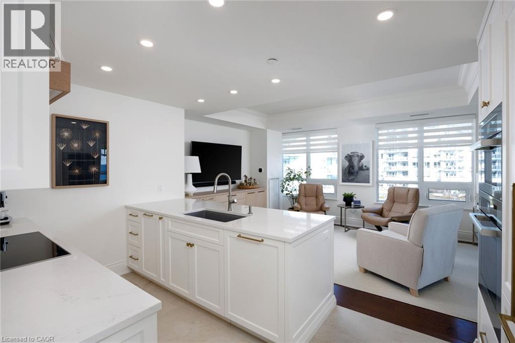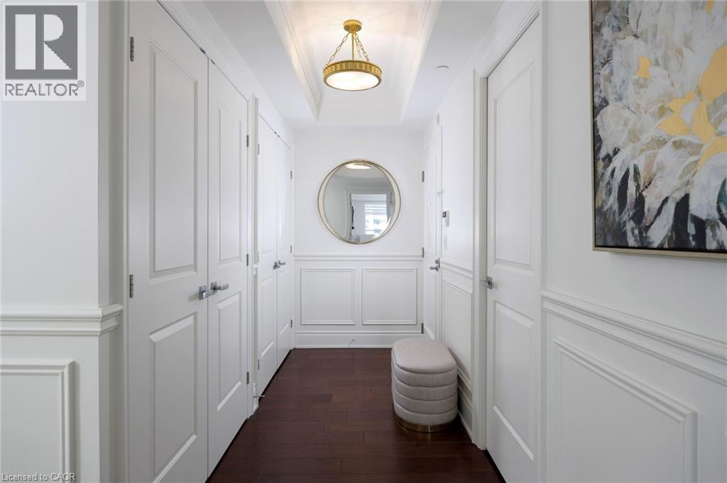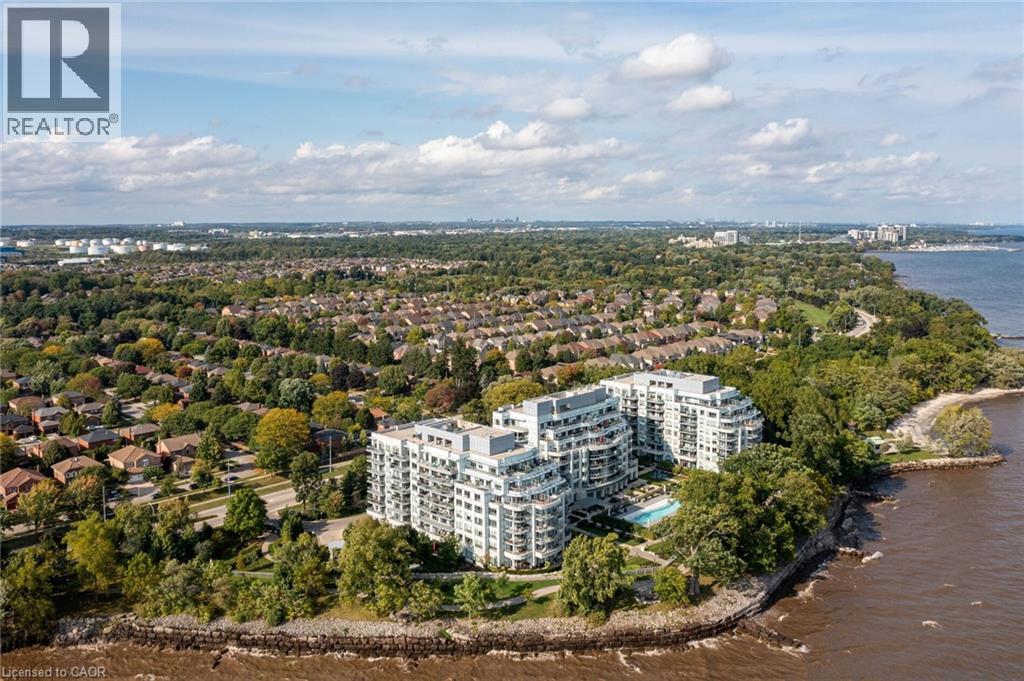 Paradise awaits at Bluwater Condos on Lake Ontario, offering true resort-style waterfront living with exceptional building amenities & unbeatable convenience. Ideally located just minutes from major highways, shopping, dining, & everyday essentials, this coveted community is steps to scenic parks & waterfront trails, with Bronte Harbour & Bronte Village-home to trendy boutiques, cafés, & restaurants-only a 4-minute drive away. This luxury renovated 2-bedroom, 2.5-bathroom condo spans approximately 1,550 sq. ft. & enjoys a premium position in the building, delivering breathtaking lake views, centre courtyard lounge, & plunge pool vistas from every window. Two private balconies provide a front-row seat to spectacular Lake Ontario sunsets. Refined craftsmanship & timeless style throughout, including engineered hardwood floors, crown mouldings, deep baseboards, 9' ceilings, wainscotting, & custom window coverings. Extensive 2025 renovations include the renovated kitchen, ensuite bathrooms, & laundry room, new high-end appliances, designer lighting, & a freshly painted interior, including ceilings, doors, & trim. The spacious formal living room & dining room offer floor-to-ceiling windows, remote-controlled blinds, & a walkout to the balcony-perfect for entertaining or quiet moments of serenity. The chef-inspired kitchen impresses with new custom cabinetry, quartz countertops, Miele appliances, & new flooring. The adjoining family room offers wall-to-wall custom cabinetry & expansive lake views. The primary retreat features its own lake-facing balcony & a luxuriously renovated 5-piece ensuite with a soaker tub & glass shower. Completing this exceptional offering is a second bedroom featuring a renovated 3-piece ensuite, a laundry room, a powder room, an underground storage locker, & two parking spaces. A rare opportunity for luxury condo living on the waterfront in one of Oakville's most desirable communities. (70006702)