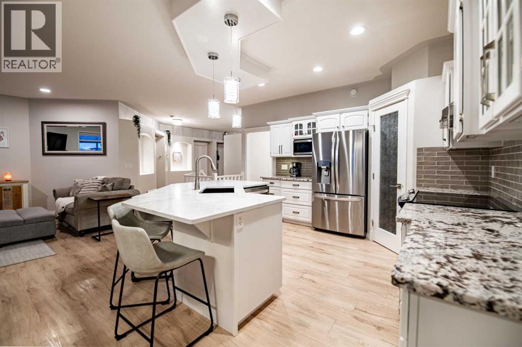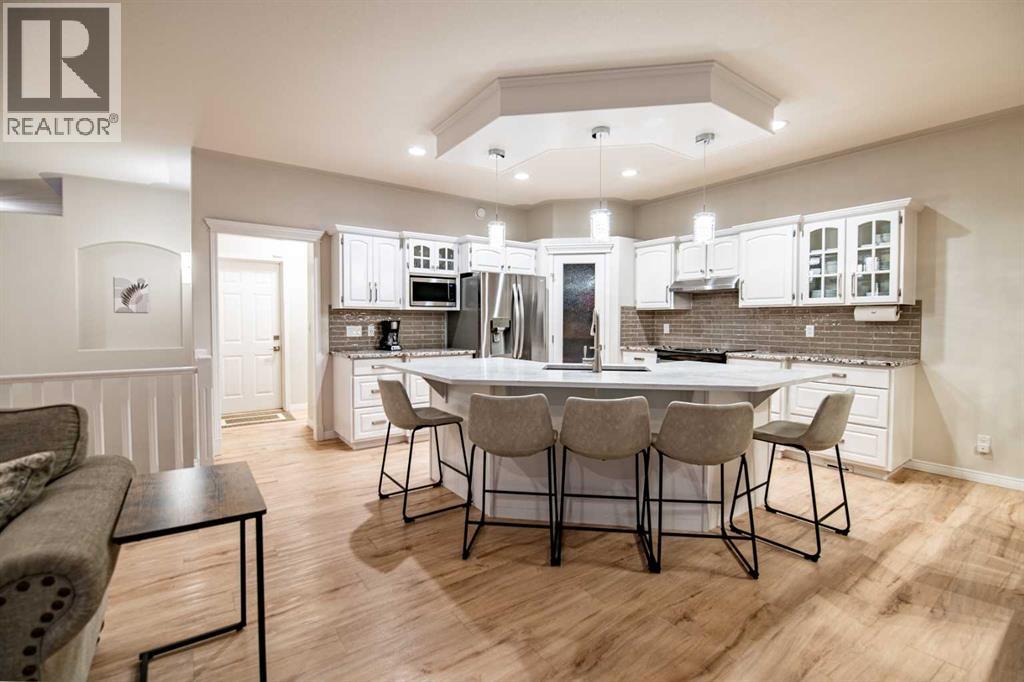 Welcome to 114 Alberts Close ~ A beautiful fully developed bungalow renovated by Sorento Homes on a huge pie lot! Boasting just under 1500 Sq Ft this immaculate property offers open concept living spaces, main floor laundry, a gorgeous kitchen and of course access to the amazing fully fenced and landscaped South facing yard. The main level features two bedrooms one of which is currently used as an office (lacks a closet) as well as the large primary suite completed by a walk-in closet and a 4pc ensuite including a separate jet tub. The showstopper of a kitchen showcases tons of cabinet space, granite and quartz counters, a corner pantry, upgraded appliances and an oversized island which overlooks the living room perfect for entertaining guests. Off of the oversized and heated garage is where you will find the laundry room with upgraded appliances. The fully developed basement with in-floor heat offers a huge recreation room as well as cozy media space accompanied by built-ins as well as a wet bar. Two oversized bedrooms and a 4pc bathroom complete the lower level. The amazing backyard offers endless options with tons of room for an additional garage if that is on your wish-list ~ currently you will find an oversized covered deck with a gas line, lower patio with a hot tub, kids play space and RV parking with a swing gate. The yard is fully fenced and landscaped with underground sprinklers front & back. Additional notable features include: Central A/C, new blinds on the main floor, vinyl plank throughout the main floor, water softener, paved back alley and so much more. Pride of ownership is evident as this property shows like a show home! (31487553)