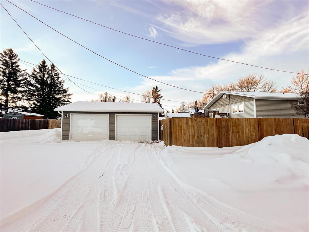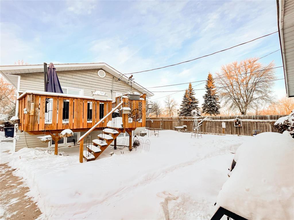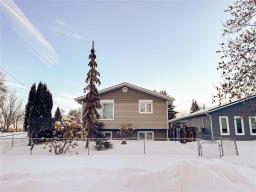 P04//Portage La Prairie/Welcomed by a fully renovated exterior completely fenced with double detached garage, this corner lot bi-level is ready to be your new home. Side entrance with room for jackets & boots leads to both the upper and lower level of this 1986 build. Upper level with 936SF of space is host to an eat in kitchen with South & West windows for natural light and an abundance of oak cabinets. The perfect space to enjoy meals and visiting. Head into the spacious living room with hardwood floors running down the hall. Primary bedroom, full bath and second bedroom with patio doors leading to private deck finish off this level. In the lower level you ll find a large rec room area, 3 piece bath, bedroom and laundry/utility room. Need a fourth bedroom? No problem, there is definitely space to incorporate another bedroom into the lower level( egress window already in place). With so much potential to make it your perfect space, this property is ready for your vision of HOME! Call your favourite Realtor and schedule a tour today. (231811663)