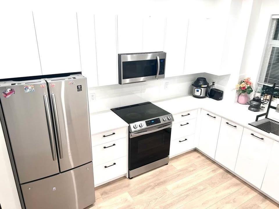 Like-new 2 Bed + Den and 3 Bath townhome in the highly desirable Fleetwood community is now available for rent. Rent includes water, strata fees, and full access to the clubhouse. This bright east-west facing unit offers natural sunlight all day and features Samsung stainless steel appliances, in-suite laundry, electric stove, a large den with window ideal for a home office, private garage with extra storage, additional driveway parking, a spacious balcony and beautiful golf course views. Enjoy premium community amenities including gym, kids' playroom, party hall with BBQ area, movie room, and games room. Prime location just steps to the bus stop, close to Fleetwood Park and Surrey Lake Park, nearby Fruiticana, Safeway and more! (32287322)