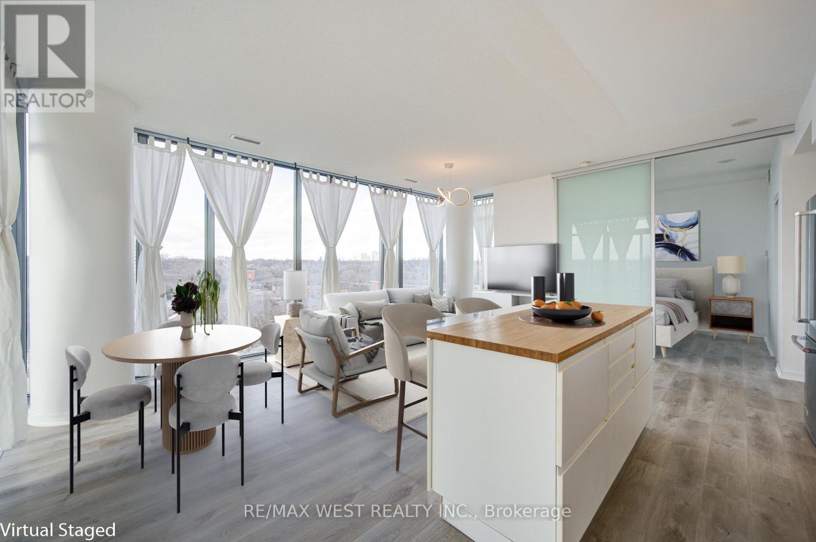 refined urban living just minutes from downtown Toronto. Expansive floor-to-ceiling windows and soaring ceilings create a bright, open atmosphere, while the corner exposure allows natural light to flow throughout the space from multiple angles.Thoughtfully designed, the open-concept layout seamlessly blends style and functionality, ideal for both everyday living and entertaining. The living and dining areas extend to an expansive private balcony featuring two separate walk-outs-an impressive and rare feature that enhances indoor-outdoor living and provides the perfect space to relax or host guests.The residence includes two well-appointed washrooms, offering comfort and privacy, along with parking for added convenience. Brand new flooring has just been installed throughout, allowing you to move in and enjoy a fresh, modern finish from day one. With 24-hour concierge and security services, residents experience peace of mind and a true luxury lifestyle.This prestigious building offers resort-calibre amenities rarely found in the city, including indoor and outdoor swimming pools, a tennis court, and a state-of-the-art fitness centre.Designed to elevate everyday living, these amenities rival those of a high-end hotel.Ideally located close to transit, dining, shopping, and entertainment, this residence provides easy access to the energy of downtown while offering a private retreat above the city. A perfect opportunity for end-users, professionals, or investors seeking space, light, and sophistication in a prime Toronto location.A truly exceptional offering that combines luxury, comfort, and convenience-this corner unit must be experienced to be fully appreciated (all furniture is digitally staged for illustration purposes) (41870990)