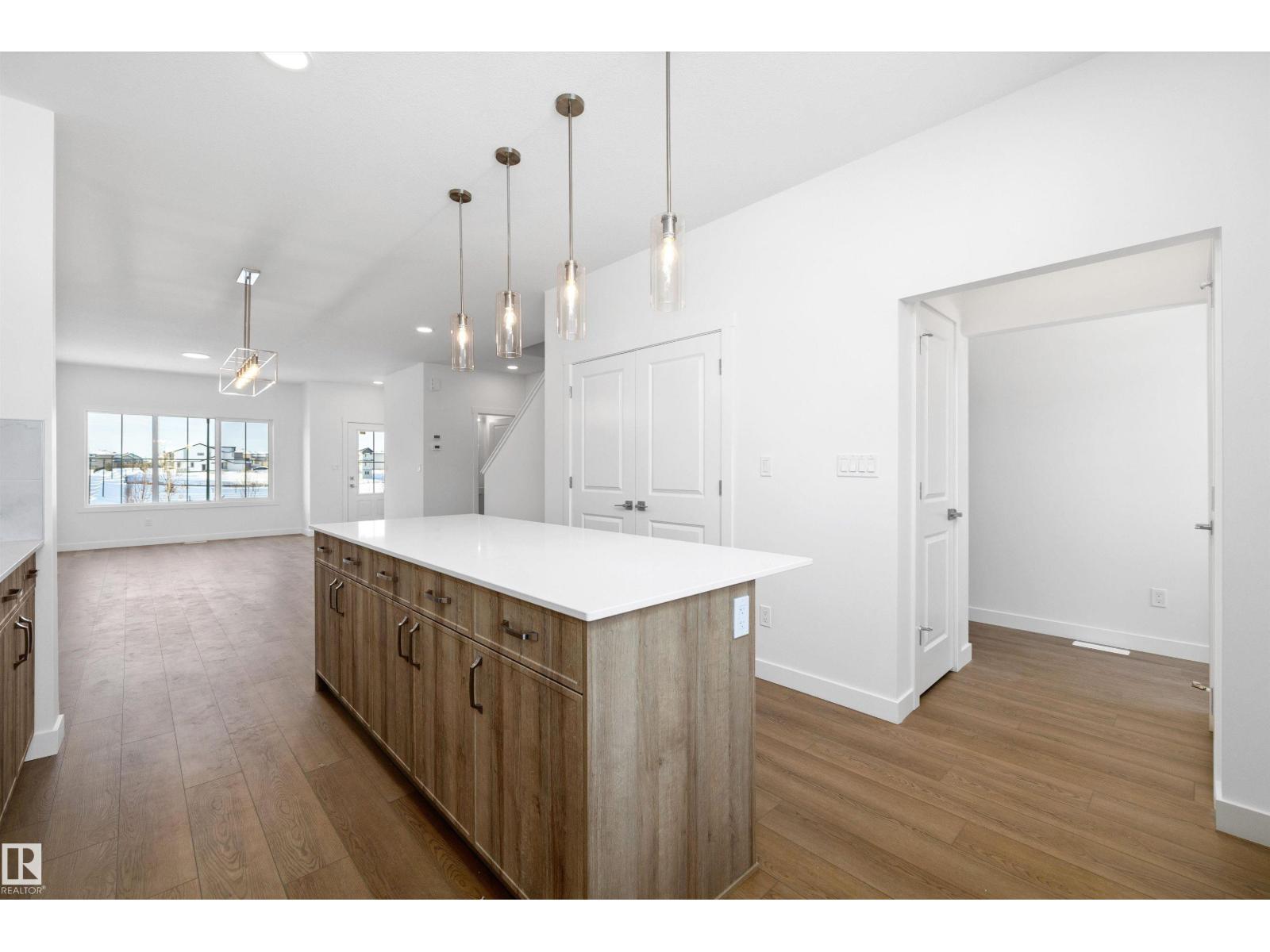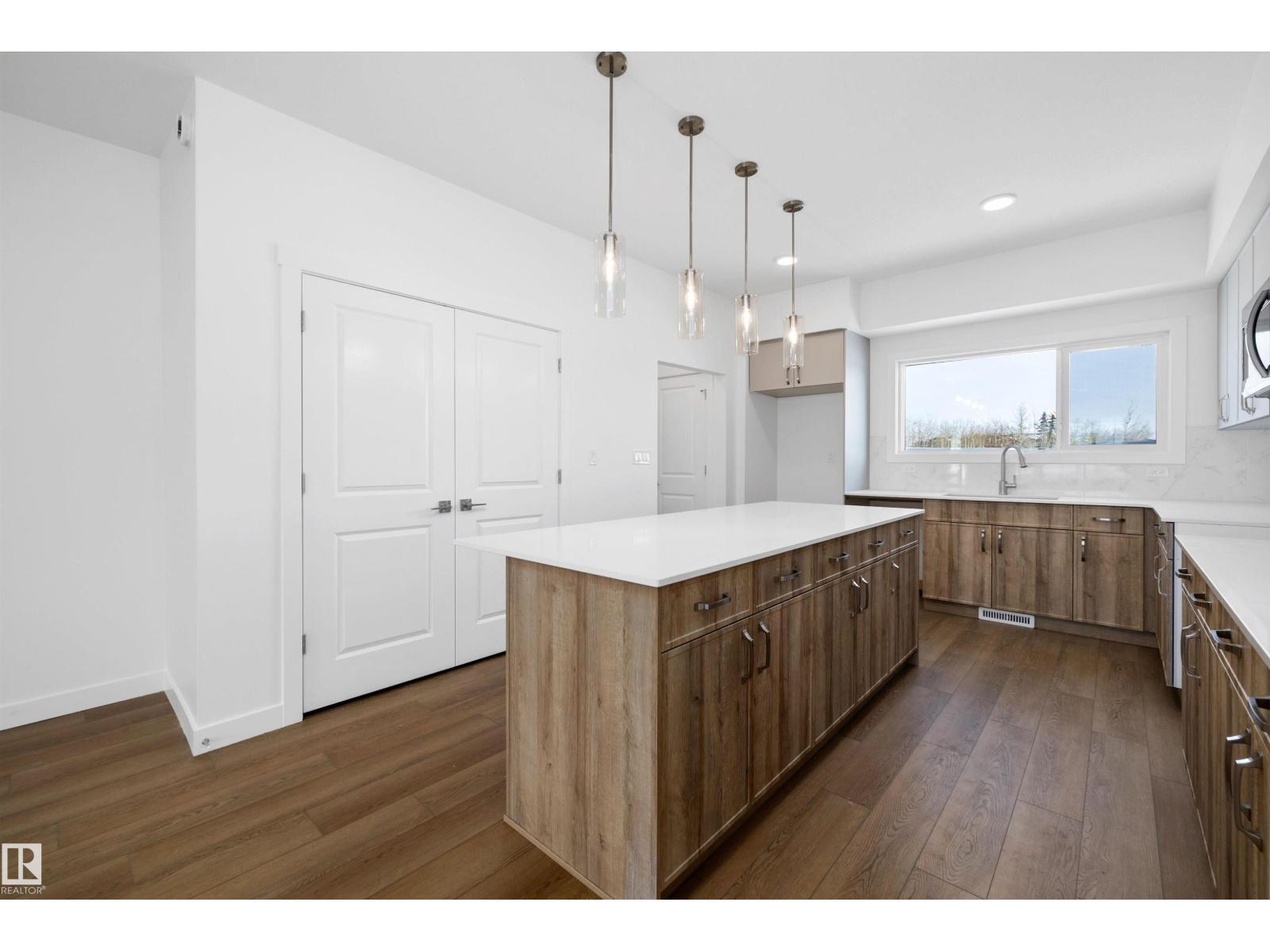 The Spirit model by Sterling Homes is an exceptional find for investors or first-time buyers. This intelligently designed home features 9 ft. ceilings on both the main floor and basement, accented by durable Luxury Vinyl Plank flooring. The open-concept layout is flooded with natural light, flowing from the front great room into a central L-shaped kitchen. This chef-inspired space boasts quartz countertops, upgraded soft-close cabinetry, and a flush-ledge island with views of the expansive backyard. A functional rear mudroom provides direct access to the lower level, while a private half-bath is tucked away for guests. Upstairs, a bright bonus room leads to a primary suite featuring a walk-in closet and a 4-piece ensuite with double sinks and a glass shower. Two additional bedrooms and a laundry closet complete the level, all finished with modern black fixtures and the Sterling Signature Specification. (33681615)