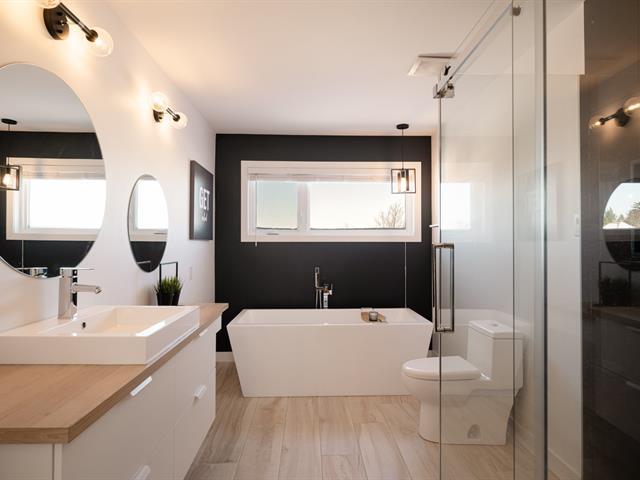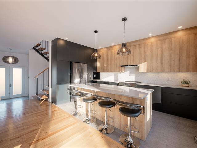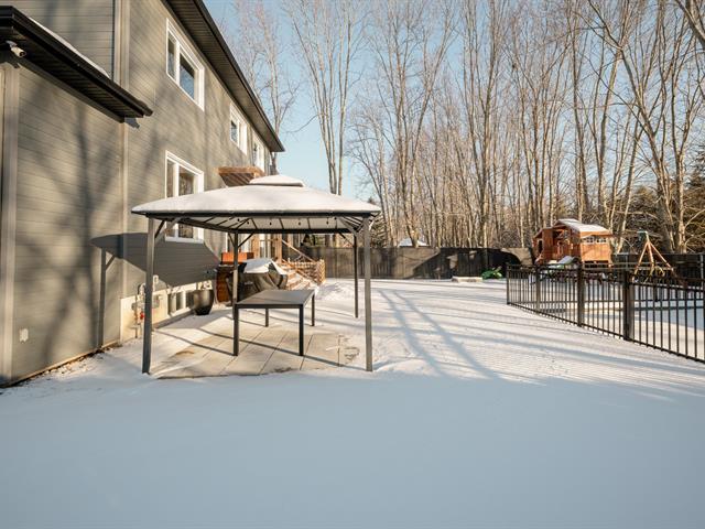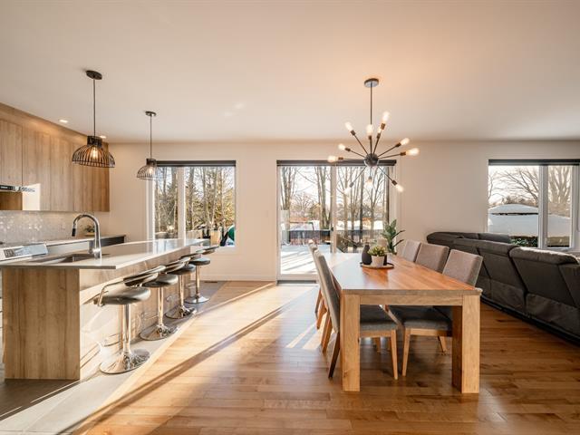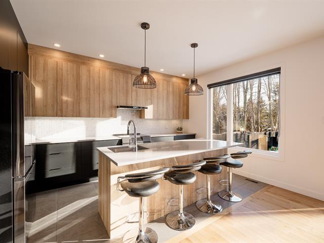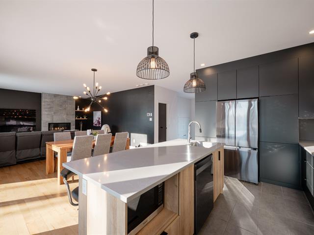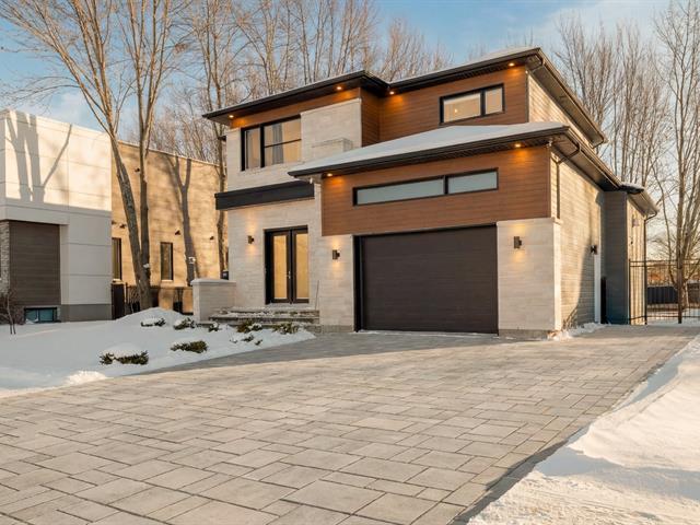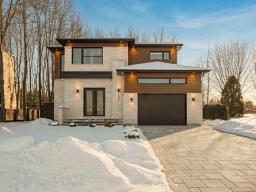 Located in the highly sought-after Milles Roches area, known for its tranquility and quality of life, this prestigious contemporary property stands out for its impressive volumes. The central stringer staircase serves as a true architectural signature and opens onto a spacious, light-filled open-concept living area, where the living room is enhanced by a natural gas fireplace. Upstairs, a well-balanced layout offers four bedrooms, including a primary suite with an ensuite bathroom. Outside, the private, meticulously landscaped backyard with no rear neighbors is completed by a heated in-ground pool. (48718796)