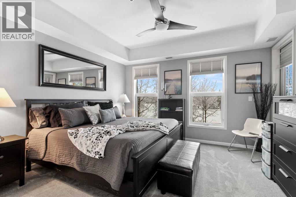 Located in the sought-after Fairway Estates, this bright third-floor 2 bedroom, 2 bathroom condo faces the golf course and is within walking distance to the beach. The open-concept kitchen, dining, and living area sits between bedrooms on opposite ends of the unit, offering great separation and natural light throughout. An electric fireplace adds warmth to the space, while the living room and primary bedroom both lead onto a spacious balcony with a gas line for a BBQ and peaceful views of the country club golf course. The primary suite features a generous ensuite with a soaker tub, separate shower, and walk-in closet. Updates include fresh paint throughout, new light fixtures and hardware, new carpet, replaced internal patio door blinds, and a new sink and toilet in the guest bathroom. This unit includes two titled parking stalls and an assigned storage unit in the heated underground parkade, along with access to luxury amenities such as a theatre room, gym, sauna and hot tub, library and games room, party room, and car wash. **NO PETS ALLOWED** (31489859)