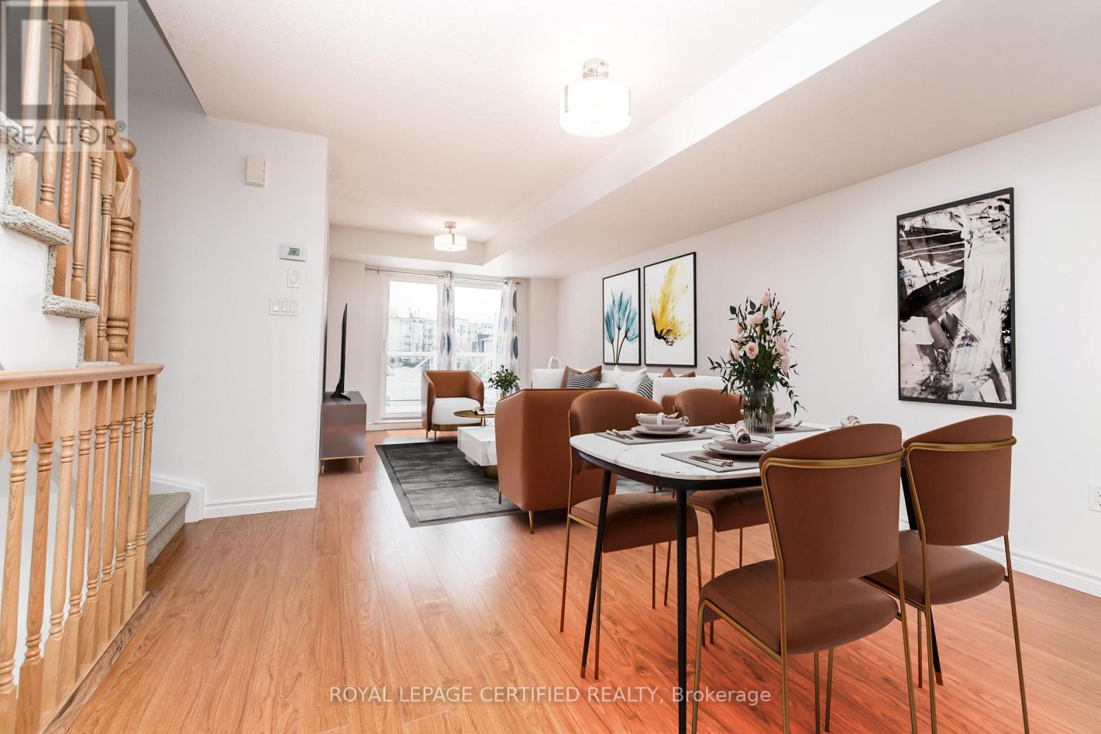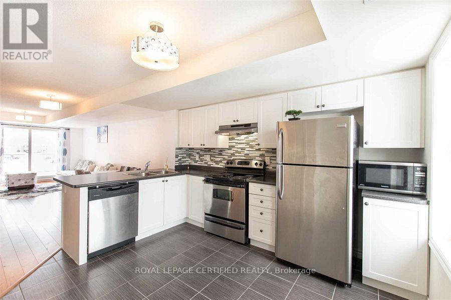 Bright and spacious Mint Condition End Unit Condo Townhouse Offering Modern Kitchen With Stainless Steel Appliances, Breakfast Bar And Open Concept Dining & Living Room With Walk-Out to Private & spacious Large Terrace. Upstairs Features A Master Bedroom With En-Suite Bath & His/Hers Closets. Good Size Second Bedroom With A Window & closet. Spacious Home With Lots Of Natural Light and Bonus Second Floor Laundry. Convenient Location Just Few Minutes Away From Milton Go, Groceries, Hwy, Walking Trails, Public Parks, Schools & Hospital. This home blends style, comfort, and function. Note: Some photos have been virtually staged to give setup ideas. (41872798)