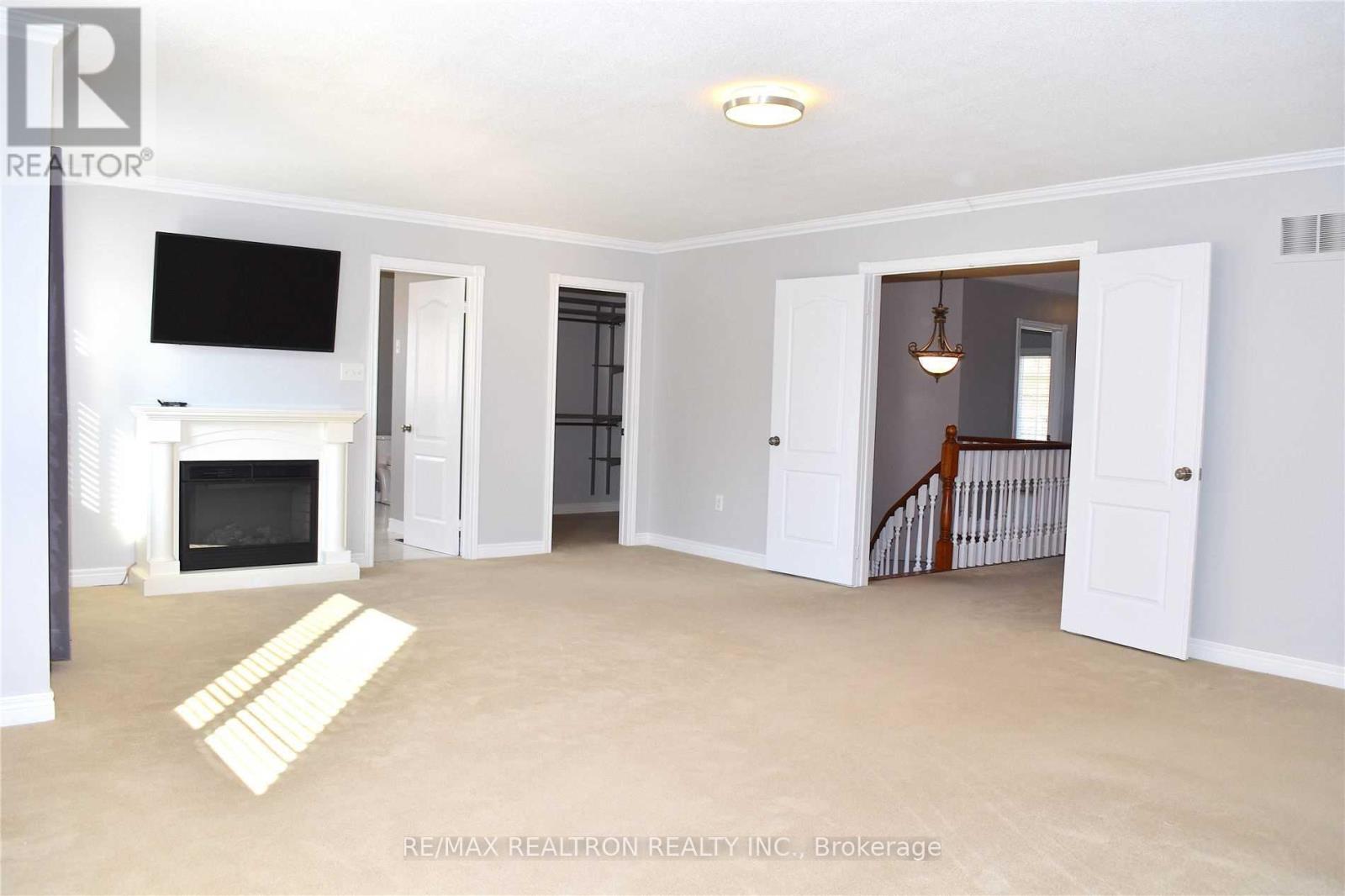 An exceptional residence set on a highly sought-after street in the prestigious Brooklin community, offering an oversized lot and outstanding backyard privacy. This beautifully appointed home showcases refined curb appeal, highlighted by an inviting front porch and elegant main- and upper-level balconies. A welcoming front foyer introduces a thoughtfully designed interior. The family-sized chef's kitchen-complete with a breakfast area, centre island, walk-in pantry, and pot lighting-flows seamlessly into the spacious family room and out to a beautifully landscaped backyard retreat, creating a warm, open-concept setting ideal for everyday family living and effortless entertaining. The combined living and dining areas, with direct access to the kitchen, further enhance the home's functional layout, offering an ideal space for both daily connection and hosting memorable gatherings. A dedicated main-floor office perfectly supports today's executive lifestyle. Additional main-floor highlights include a convenient laundry room with custom storage cabinetry, a side entrance, and direct access to the two-car garage. Upstairs, the luxurious primary suite features a generous walk-in closet, an oversized spa-inspired ensuite, and a private sitting area complete with a fireplace and TV. A second expansive primary bedroom offers its own ensuite and walk-in closet. The third bedroom includes a walk-in closet and shares a well-appointed his-and-hers bathroom with the fourth bedroom. Ideally located within walking distance to top-rated schools, parks, and everyday amenities, with quick access to public transit and Highways 407, 412, and 401. Meticulously maintained and professionally cleaned, this exceptional home is ready to welcome its next temporary homeowner. (41873897)