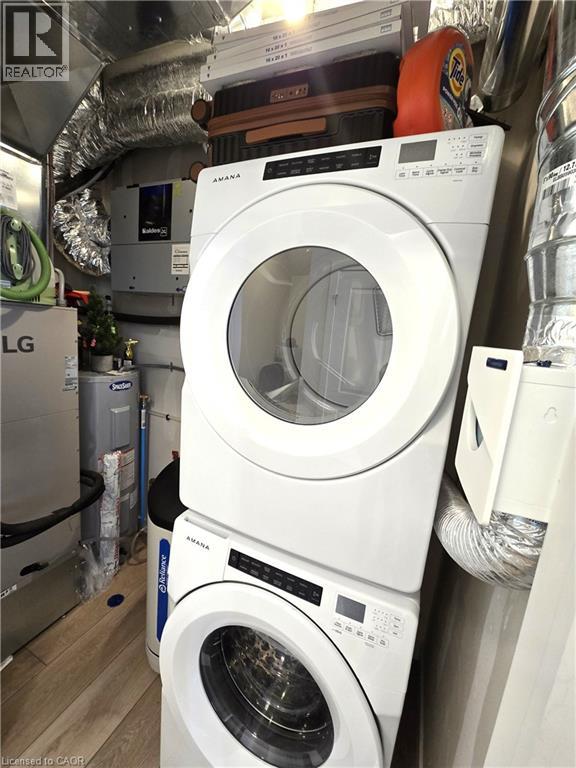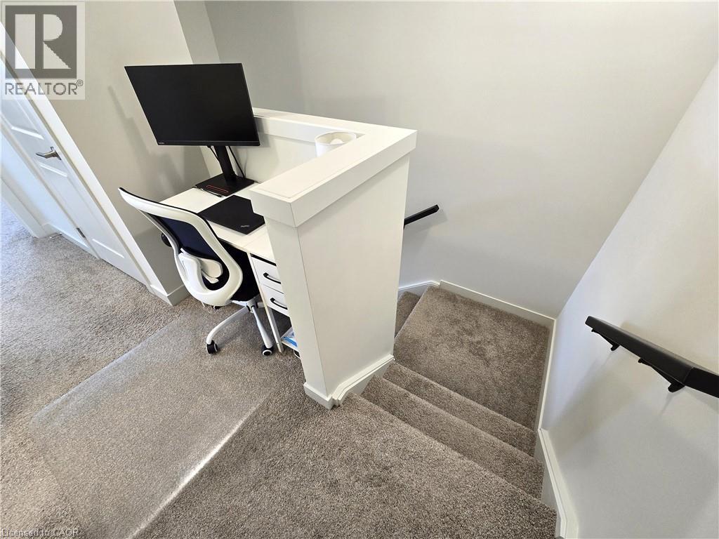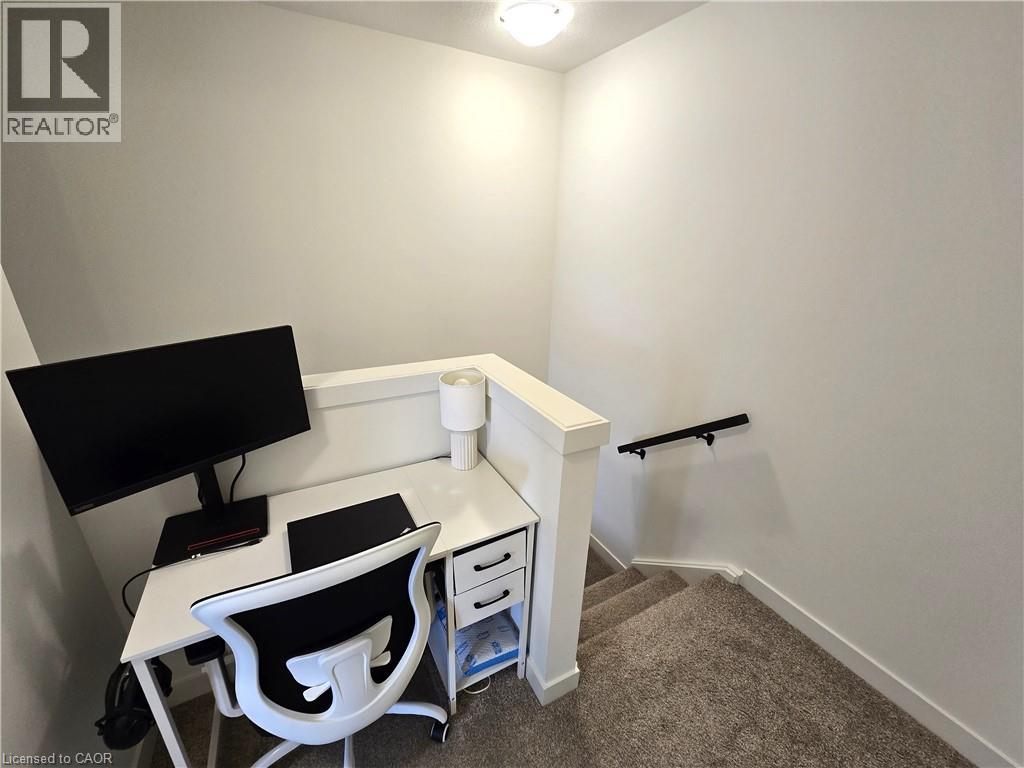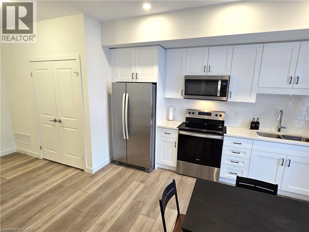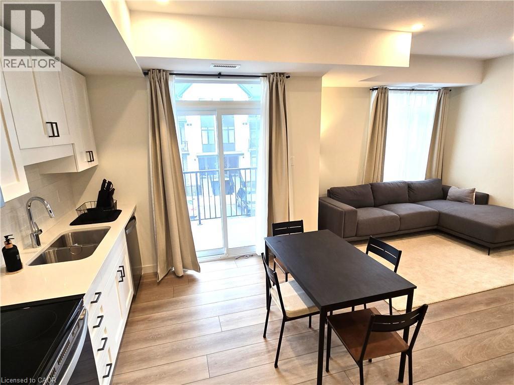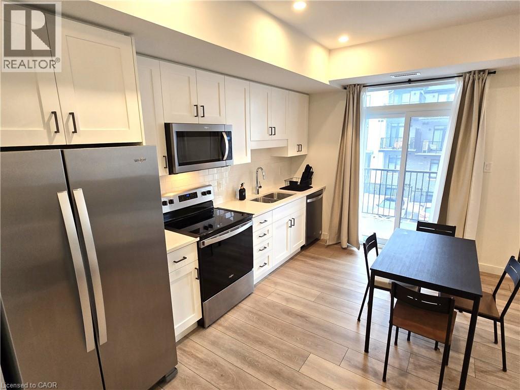 405 Myers Road, Cambridge*Unit 42*Stunning 2 bedroom stacked townhouse for lease*The Birches by Granite Homes*Upper interior unit*1025 sf*Main floor 9ft ceilings, Luxury vinyl plank flooring in foyer, kitchen, bathrooms & living/dining room*Lots of pot lights*Double coat closet, utility room W/High efficiency 2-way electric heat pump, Energy Recovery Ventilator, High efficiency electric water heater, water softener white full sized stacked washer/dryer, & storage room*O/C kitchen offers polished quartz counters W/Double under-mount stainless steel sink, tiled subway style back splash, white kitchen cupboards W/Soft close doors & drawers, extended upper cabinets W/Extra deep cabinetry build-out over the fridge, SS kitchen appliances including fridge, electric stove, built-in dishwasher & over-the-range microwave, USB receptacle, and a W/O to private balcony*The open concept living room overlooks the kitchen offering TV ready wall including Cable/Cat 5E connection, conduit, two receptacles and a Ecobee thermostat*Upper floor offers 8 foot ceilings, computer niche,4 pc bath W/Polished cultured marble counter tops, integrated sink, vanity W/Soft close doors and/or drawers, a well appointed 2nd bedroom currently used as a den, a spacious Primary bedroom has a 2nd balcony, 3 pc ensuite bath W/Rain shower head, vanity W/Soft close doors drawers, double closet, black out curtains, 2 USB receptacles*Extras: All existing light fixtures, window coverings, stainless steel [Fridge, stove, B/I microwave, B/I DW], white stacked washer & dryer*1 surface parking spot*Outdoor amenities include community pergola W/ BBQ* is Conveniently located in East Galt neighborhood of Cambridge, close to everyday amenities, schools, public transit & quick access to the 401*Hike or bike the local trails & parks for year-round outdoor activities. There is also the weekly Cambridge Farmer's Market*2 balconies*Charging station for electric vehicles*Option to lease furnished available upon request (70009243)