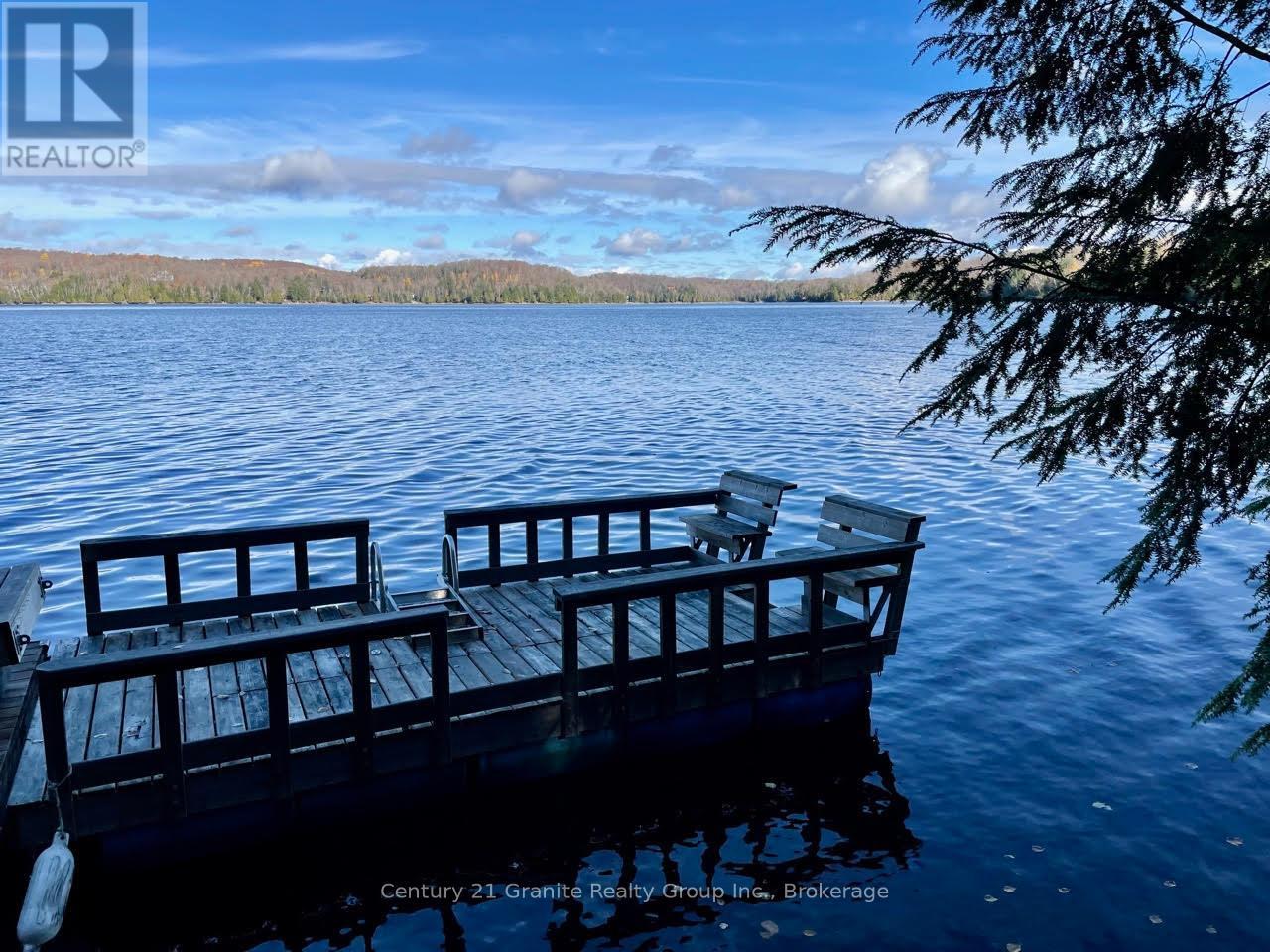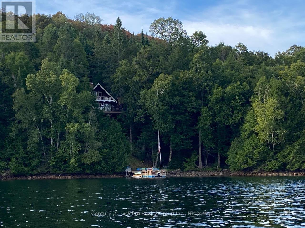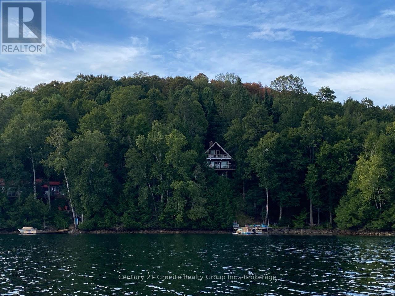 Welcome to this lovely 4-season chalet on spectacular Miskwabi Lake! Large lot with 190 feet of waterfront with clean rock and sand shoreline, and incredible big-lake view. Almost an acre of land, well-treed for great privacy. Nice level area at the waterfront and deep water off the dock - perfect for swimming and boating. Enjoy summer sunsets from the dock. Open-concept main floor features custom kitchen with granite countertops and island, and picture windows framing the awesome lake views. Walkout to large wraparound deck - and new 18' x 18' 3-season screened porch/sunroom with retractable window system - outdoor entertaining at its finest! Main floor has one bedroom and 4-piece bath. Upstairs there are two more bedrooms, including main bedroom facing the lake with its own private balcony. Downstairs there is a cozy rec room with walk out, wood stove, and lower floor laundry. Heated water line with UV system. Plus there's a newer 32' x 16' garage, with separate storage room - great for office space, games room or workshop. Easy access by year-round Municipal road - Broken Paddle is a quiet dead-end road with only 10 cottages. Just 20 minutes to Haliburton village for shopping and services. Miskwabi Lake is part of a 2-lake chain with Long Lake - located at the top of the watershed for exceptional water quality. Enjoy miles of boating, water sports and lake trout fishing on this desirable lake system. (41874787)