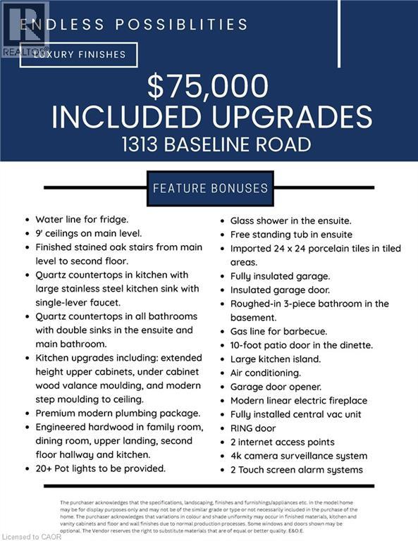 This stunning brand-new, 2,694 sq. ft. home offers the perfect combination of modern design, spacious living, and an unbeatable location. Situated on a generous lot within walking distance to Lake Ontario and nearby parks, this home provides a serene setting while offering convenient access to highways for easy commuting. With 4 bedrooms and 2.5 bathrooms, this thoughtfully designed layout is perfect for families, entertaining, and everyday comfort. Inside, the open-concept floor plan features a gourmet kitchen with premium appliances, a large island, and quartz countertops that flow seamlessly into the bright and inviting living space. The luxurious primary suite boasts a spa-like ensuite with a soaker tub and glass shower, while the additional bedrooms offer ample space and natural light. Large windows throughout the home create an airy atmosphere, enhancing the modern aesthetic. This property also comes equipped with a range of upgraded features for your comfort and peace of mind, including a built-in security system with 4 exterior cameras, upgraded Wi-Fi pods installed throughout the entire home for optimal connectivity, and energy-efficient finishes. A spacious double-car garage, upgraded flooring, and designer fixtures throughout add even more value to this move-in-ready home. From its prime location to its luxury upgrades and customizable finishes, this home is a rare opportunity to create a space that truly feels like your own. Don’t miss your chance to own a beautiful new construction home in a sought-after neighbourhood—contact us today for more details! (70010283)