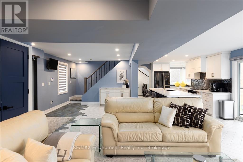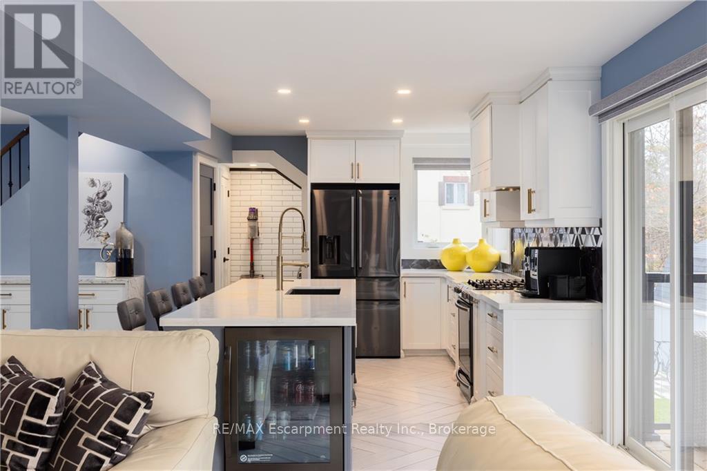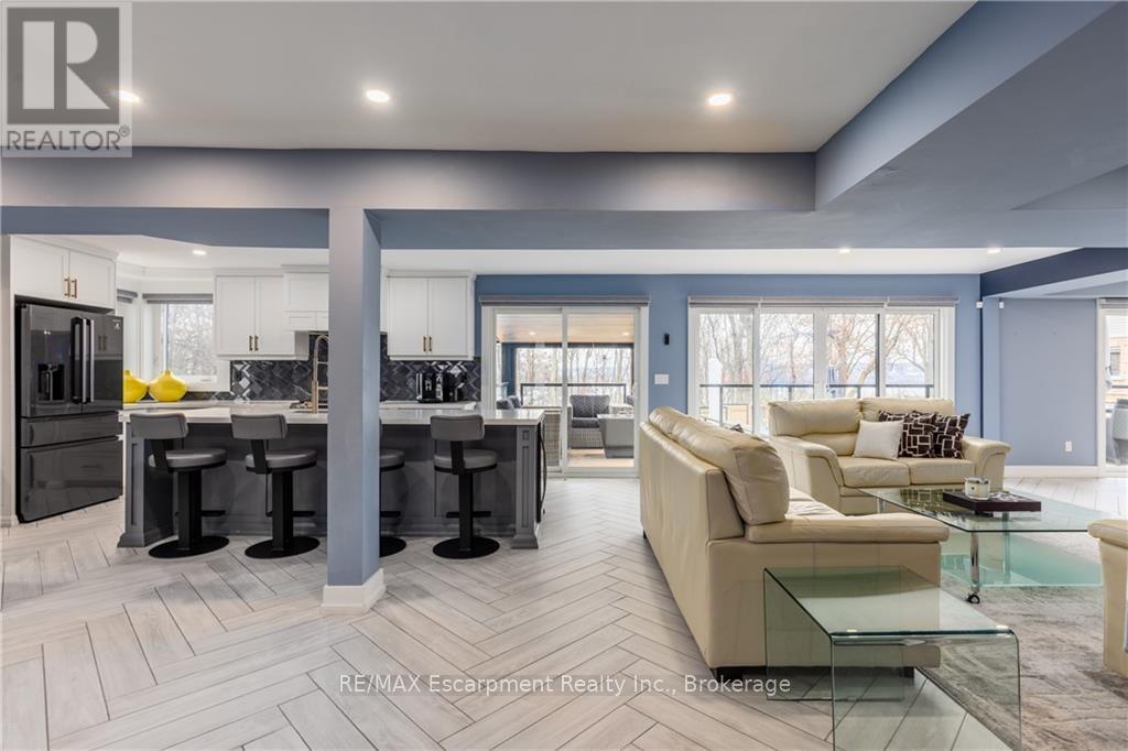 Tucked away at the end of a quiet cul-de-sac in Burlington's highly sought-after Aldershot neighbourhood, this beautifully renovated home (2019) offers an exceptional lifestyle ideal for families and downsizers alike. The bright, open-concept main floor features a spacious kitchen with centre island flowing effortlessly into the living and formal dining areas, all highlighted by breathtaking views of Burlington Bay. Expansive floor-to-ceiling windows bathe the space in natural light while framing the surrounding greenspace. This level also includes a convenient main-floor bedroom, laundry, a flexible office space, and a modern three-piece bathroom. Upstairs, three well-appointed bedrooms await, including a tranquil primary retreat with a spa-inspired ensuite complete with a soaker tub and skylights. Designed with versatility in mind, the lower level is perfect for multi-generational living and offers a second kitchen, comfortable living area, three-piece bath, and a fifth bedroom-ideal for in-laws or a nanny suite. A walk-up leads to the professionally landscaped backyard, an entertainer's haven featuring a covered upper porch, outdoor dining space, a sparkling inground concrete pool, and a lower-level fire pit area for relaxing with family and friends. Adding to its appeal, the property includes a rare 1/75th ownership share in Brighton Beach, a peaceful 5.5-acre conservation area with scenic trails and direct beach access. Enjoy easy access to shopping, schools, major highways, Aldershot GO Station, Royal Botanical Gardens, and premier golf courses. This is a rare opportunity to live in a remarkable home that seamlessly blends natural beauty with modern city living. (41875914)