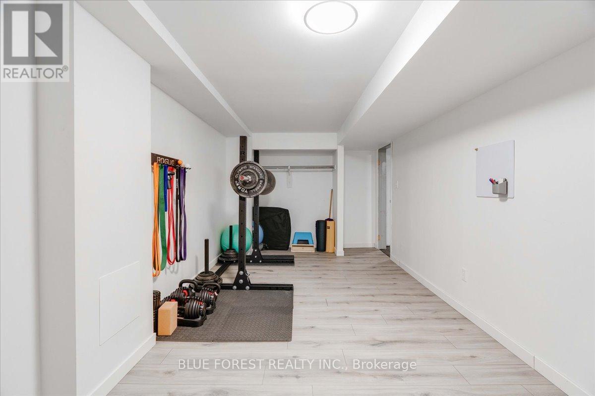 Welcome to this well-maintained two-storey condo townhouse, offering space, functionality, and a setting that works beautifully for family life. You're welcomed by a front entry with a convenient main-floor powder room and hallway closet storage. The living room is bright and inviting, with large windows that bring in plenty of natural light. From the dining area, patio doors lead out to a private deck and backyard surrounded by mature trees and backing onto green space - a peaceful spot to unwind or let kids play. The updated kitchen features quartz countertops, stainless steel appliances, an elegant backsplash, and plenty of cabinet and counter space, making everyday meals and entertaining easy. Upstairs, you'll find three bedrooms, including a primary bedroom with its own private ensuite powder room. Two additional bedrooms are supported by a full bathroom, offering flexibility for family, guests, or a home office setup. The finished basement adds even more living space - ideal for a rec room, play area, or home gym - along with another full bathroom, bringing the total to 2 full baths and 2 half baths. An attached garage, private driveway parking, and a quiet west-end location close to parks, shopping, transit, and schools - including Western University and University Hospital - complete this move-in-ready home. (41876653)