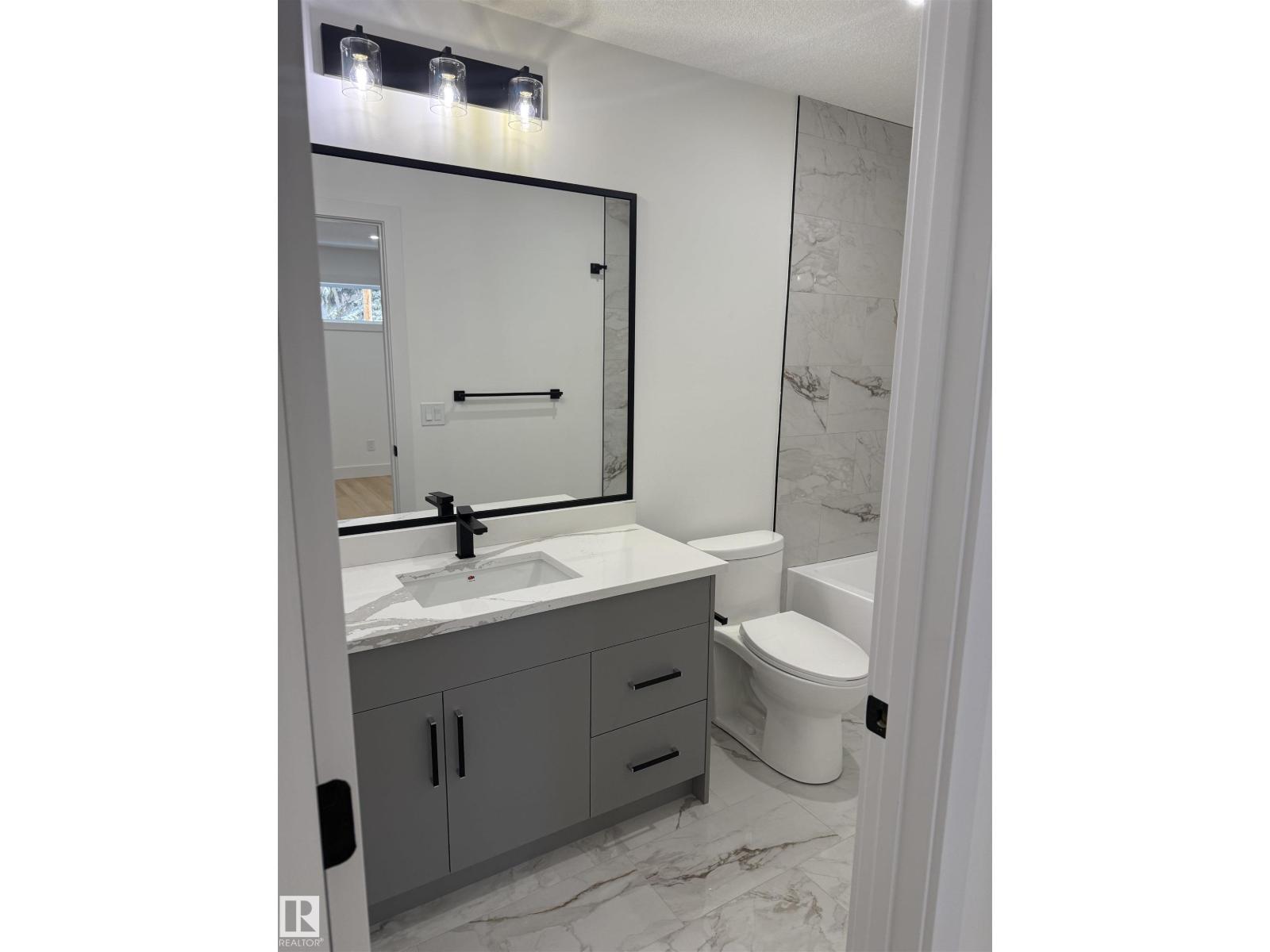 This brand-new, 2-storey half duplex features a modern open-concept living area with quartz countertops and a main-floor bedroom with a 3-piece bathroom. Upstairs, you'll find three bedrooms, including a Primary with an ensuite and walk-in closet, plus a laundry room and a 4-piece bathroom. The property also includes a 2-bedroom legal suite and a double detached garage. (33684539)