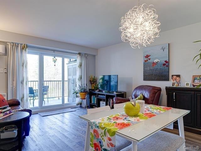 Condo haut de gamme au Boisé du Parc à St-Jérôme. Cuisine avec armoire lustré et comptoir de quartz. EMPLACEMENT DE CHOIX! Situé au 1er étage du dernier immeuble au bout d'une rue paisible, sans voisin avant ni arrière. À proximité des services, etc : Aut.15, écoles, cégep, université, gare de St-Jérôme, quartier des sports et accès au sentier menant au Lac Jérôme. Construction de qualité avec planchers en béton séparateur. Inclus : thermopompe murale, toiles solaires, module de rangement extérieur, cuisinière, réfrigérateur, laveuse et sécheuse. 2e stationnement disponible à 50$ par mois. Grande terrasse privé avec vue sur le boisé. (52286107)