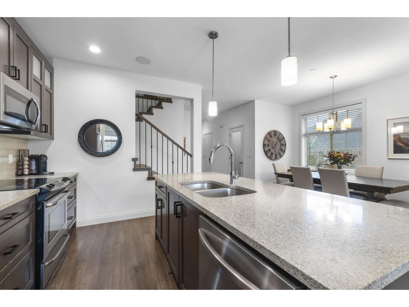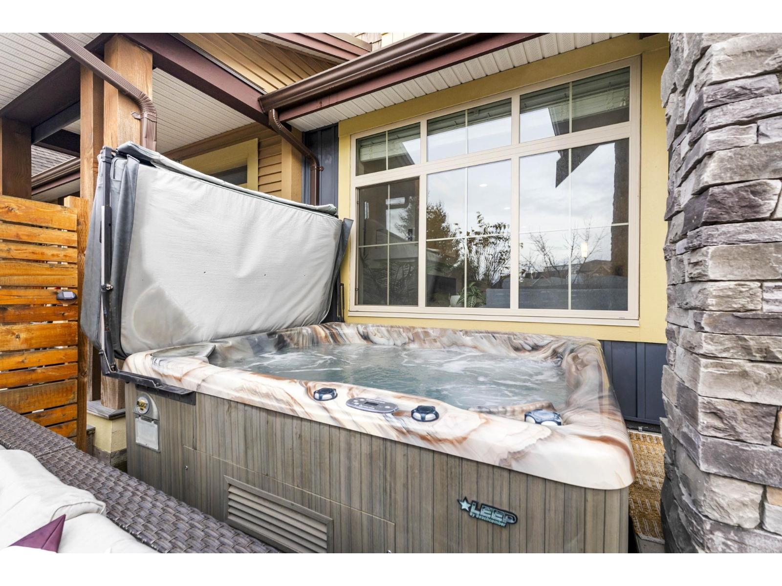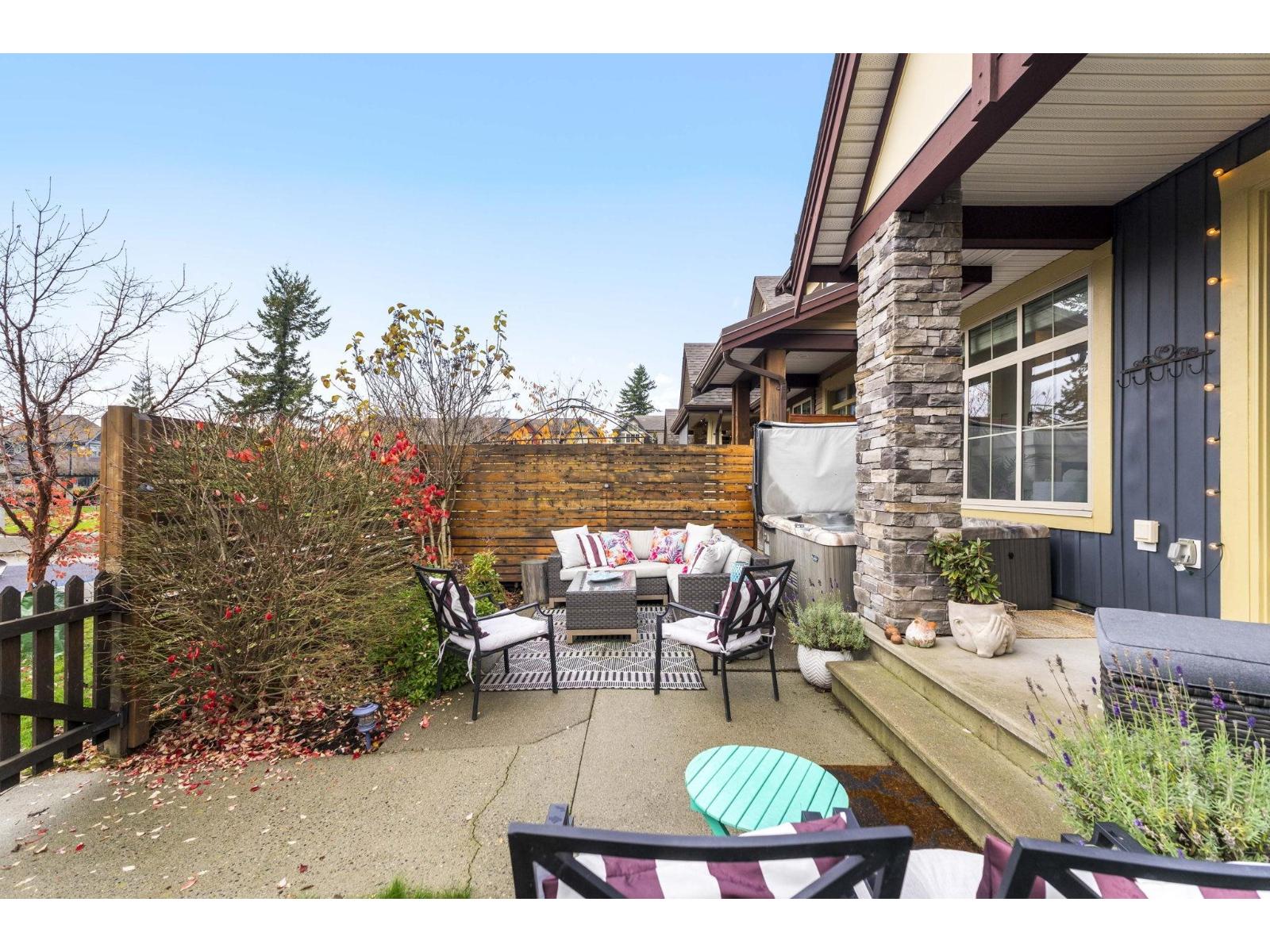 END UNIT ROW HOME IN LINDY'S CROSSING, BACKING LINDYS PARK! 1 of 6 row homes (non strata) in this location, that do not become available often! Beautiful 2 story w/ bsmt floor plan over 2,356sqft w/ 4 bdrms, 4 bathrms, has A/C, fresh paint, gutter guards, & HOT TUB! Modern open concept main living area w/ a spacious kitchen w/ a large island, quartz counters, & stainless steel appliances. Bright living room w/ south west exposure, dining room, w.i pantry, & powder room. Beautiful primary bedroom upstairs w/ vaulted ceilings, w.i closet, and ensuite w/ a dual vanity. 2 other bdrms, bathroom, & laundry above. Rec room, massive bedroom w/ w.i closet, 4pc bath, and a great storage room all in bsmt. Peaceful, private yard w/ hot tub backing onto a park. Walking distance to the Vedder River! * PREC - Personal Real Estate Corporation (32291396)