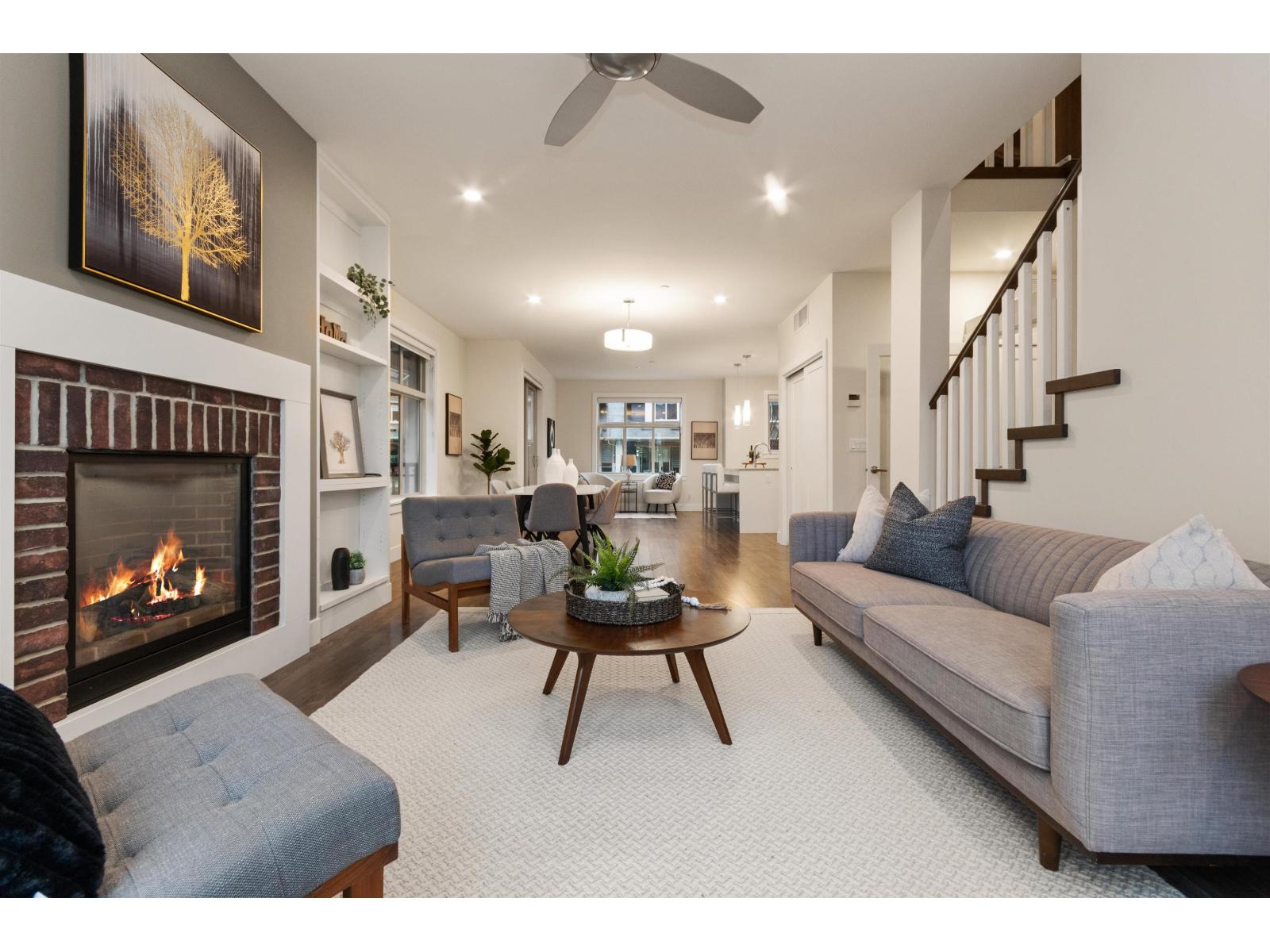 This move-in-ready, Manhattan-inspired end-unit Brownstone in Garrison Crossing features an open floor plan with 4 bedrooms, 3 bathrooms, and high-end finishes throughout, including newer flooring and paint. This city-inspired walk-up is centrally located in a prime location, backing directly onto a city park. The main floor is perfect for entertaining around the kitchen island or relaxing by the fireplace. Recent exterior upgrades include an expanded driveway, turf and fenced sitting areas, a gorgeous interlocking brick patio, composite balcony, and outdoor kitchen. Ideally located in the heart of Garrison Crossing, just steps from shopping, dining, recreation, and the Rotary Trail, with quick access to the freeway and top-rated schools. Enjoy low-maintenance living with NO STRATA FEES. (32290685)