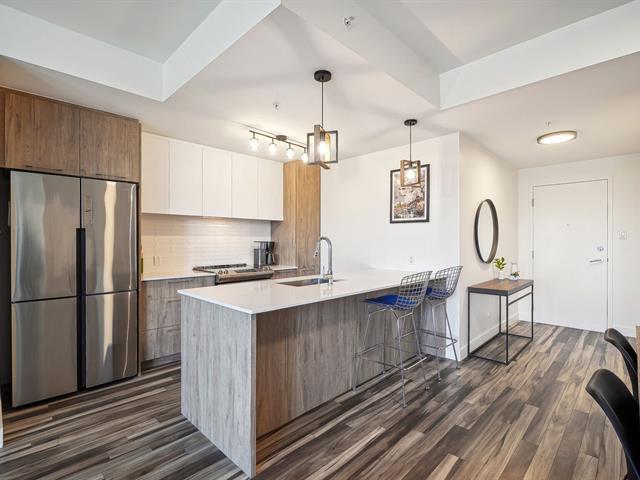 Spacious 2-bedroom, 2-bathroom condo in sought-after Kubik Phase 2. Open-concept layout with Quartz kitchen counters and an 8' x 3' island with seating for four. Primary bedroom with walk-in and ensuite featuring glass shower. Second bathroom with bathtub. Hardwood floors throughout, wall-mounted A/C, and north-facing balcony with BBQs permitted. (41066920)