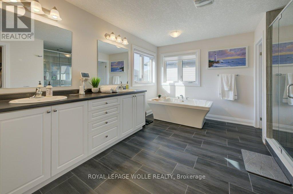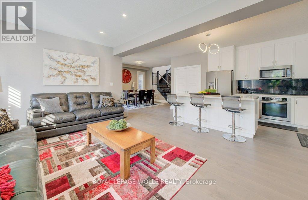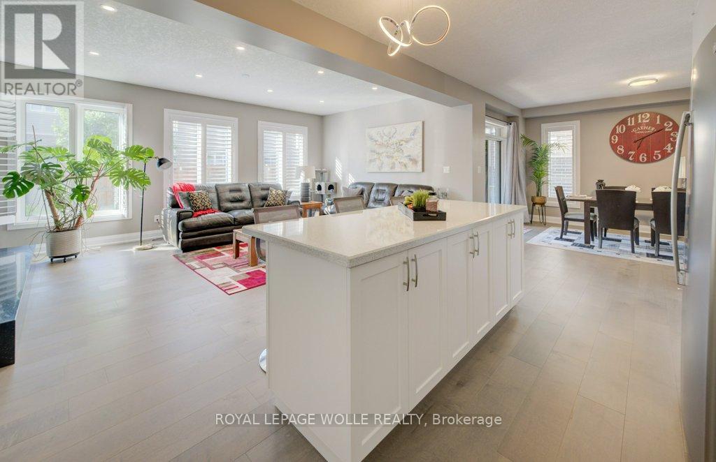 Welcome to Your Dream Home in Prestigious Kiwanis Park! Built in 2018 and located in one of Kitchener's most desirable neighbourhoods, this beautifully designed home offers an exceptional layout, premium finishes, and unbeatable access to both nature and city conveniences. A concrete driveway and striking curb appeal welcome you into a spacious front foyer, setting the tone for the impressive interior. The main floor features a sun-filled open-concept living space with a custom media wall and sleek gas fireplace-perfect for relaxing or entertaining. The modern kitchen is loaded with quartz countertops, stainless steel appliances, a pantry, and an oversized island with seating. A convenient 2-piece bath and main-floor laundry add ease to everyday living. Upstairs, enjoy a large family room-ideal for a playroom, media lounge, or home office. The primary suite is a true retreat, featuring a spacious walk-in closet and a luxurious 5-piece ensuite complete with a separate tiled shower with glass doors, a soaker tub, and a double vanity. Two additional bedrooms share their own spacious 5-piece bathroom, thoughtfully designed with a vanity and sink on each side, and a separate door leading to the toilet and shower area-ideal for shared use and added privacy. Step outside to a covered deck that extends your living space into the backyard-perfect for outdoor dining and lounging. The large unfinished basement offers endless potential for future development. All of this within walking distance to Kiwanis Park, scenic trails, expansive green spaces, and the Grand River. You're just minutes from both universities, Conestoga Mall, Highway 85, and with quick access to the 401. This is your chance to own a modern, move-in-ready home in one of Waterloo's most family-friendly and nature-rich communities-don't miss it! (41880206)
