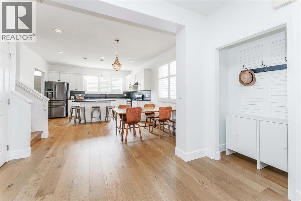 Only 12 homes on this secluded greenbelt street! Forest view from front veranda and primary bedroom. Ample parking and sun, walking distance to schools, rec centre, and shops. So many upgrades in this spacious open plan - new wide plank wood floors, all new paint in and out, new roof and furnace, fabulous '5-star hotel´ bathroom reno, gas stove and fireplace, new dishwasher, custom window shutters throughout. Three spacious bedrooms up, 4 bathrooms, plus finished basement with separate entrance, kitchen roughed in for easy suite. Back alley access for additional parking, outbuildings, or a garage. Super clean, nothing to do but move in! (32292842)