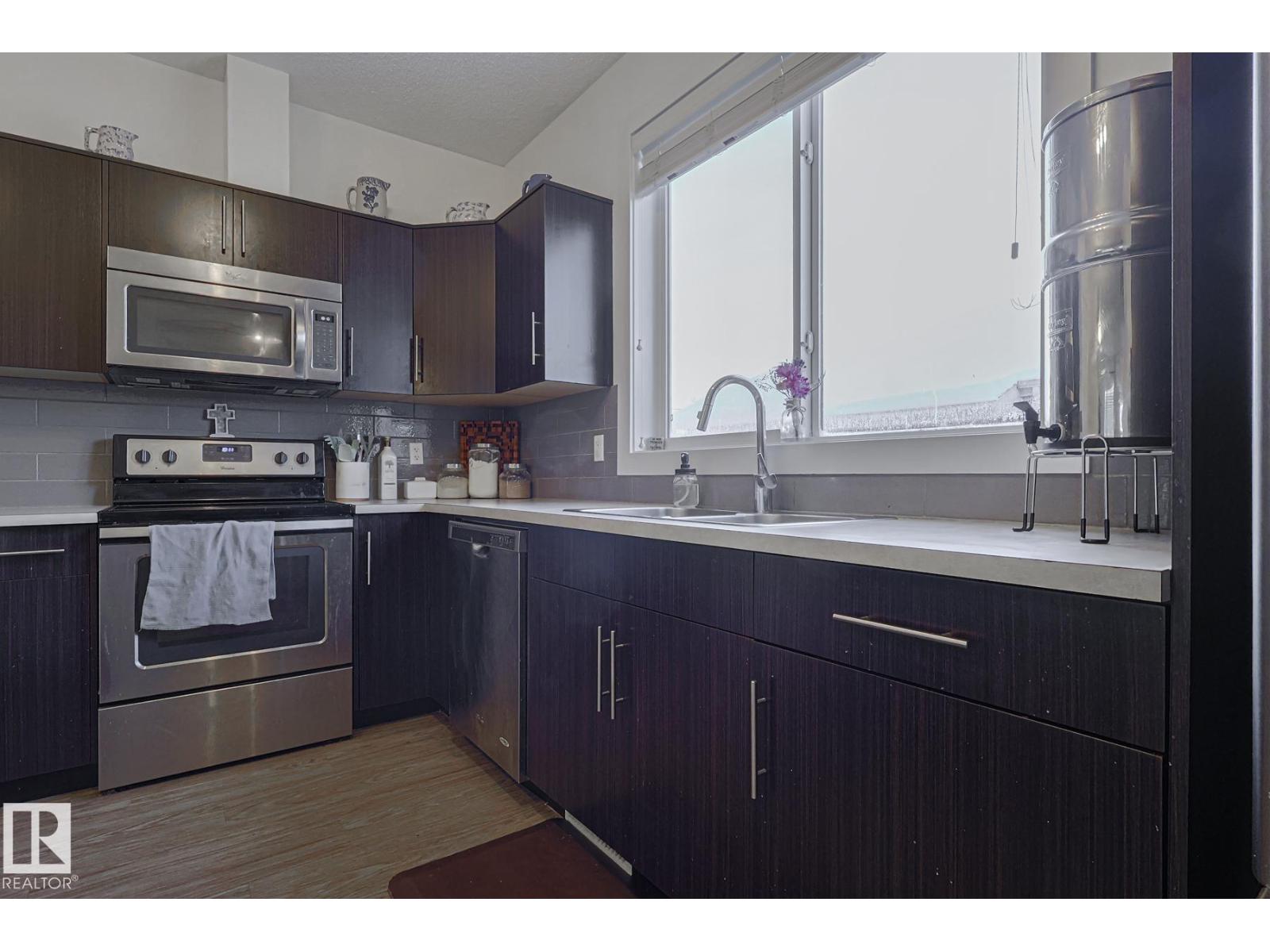 Welcome to Southfork in Leduc! NO CONDO FEES! This townhouse has a lot of sweet lil extras to offer; 9 foot high ceilings, big south facing windows, Shiplap feature walls in the living room and primary bedroom. Beautiful back door Pinterest bench with a 'live edge' wood seat! Great style! Wide open concept on the main floor w loads of natural sunlight and vinyl plank flooring. Modern (and functional!) kitchen with shaker cabinets, plenty of storage space, and a centre Island. Attic recently upgraded to R60 insulation! + 2 HUGE Bedrooms upstairs each with their own walk in closets and ensuites! Don't forget about the half bath on the main floor as well! very neat and tidy little backyard and a detached double garage finish off the property. Just STEPS from father Leduc School, and QUICK access to the Henday! It's All Here! (33686545)