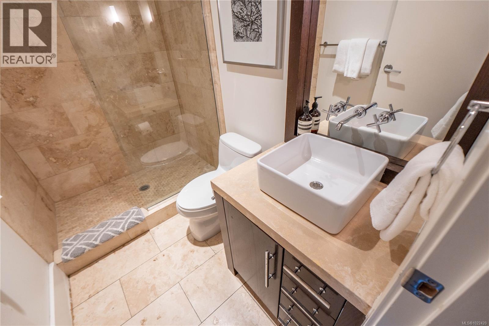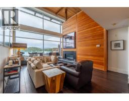 Commanding an elevated position within Tofino’s iconic waterfront landmark, The Shore, this architectural loft redefines coastal sophistication. The residence is a masterclass in West Coast modernism, defined by soaring vaulted cedar ceilings and a dramatic Douglas Fir feature wall anchored by a sleek built-in fireplace. Every detail exudes quality, from the hand-scraped oak flooring to the culinary suite featuring Sub-Zero appliances and honed limestone countertops. While the spa-inspired bathrooms offer a limestone-clad sanctuary, the heart of the home is the expansive upper-level living area, where floor-to-ceiling glass opens to a private terrace. From this vantage point, you are immersed in the panoramic beauty of Clayoquot Sound, watching the sky transform over the inlet at sunset. This concrete-built masterpiece includes secure underground parking and a dedicated storage locker, offering the ultimate luxury for a primary resident or a monthly getaway. (30239885)