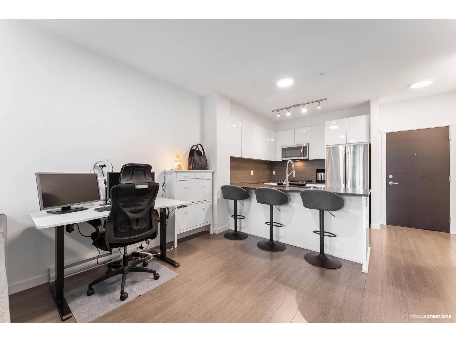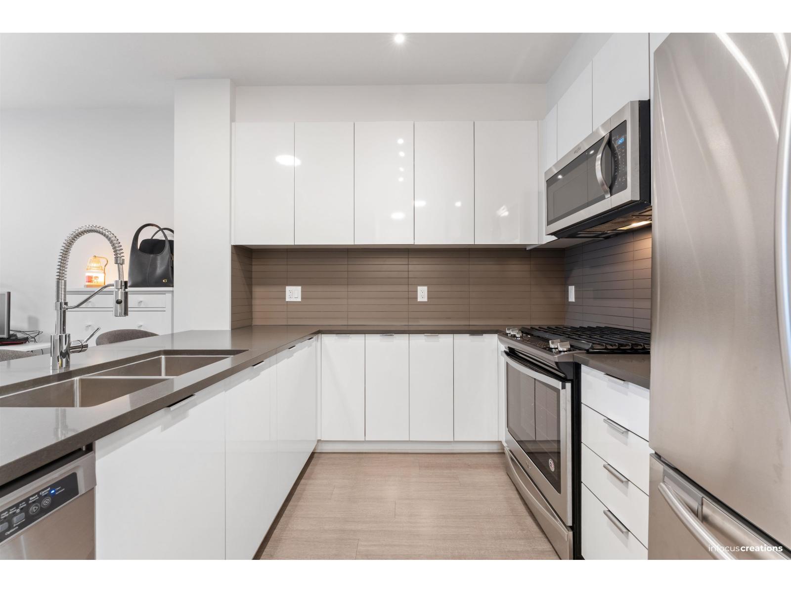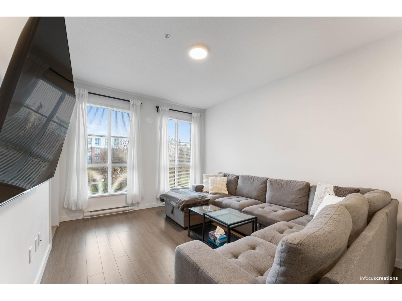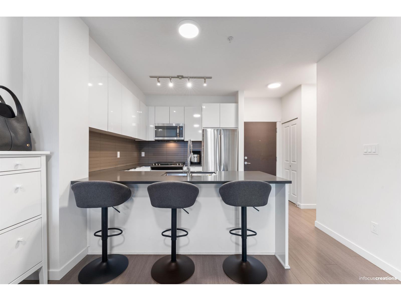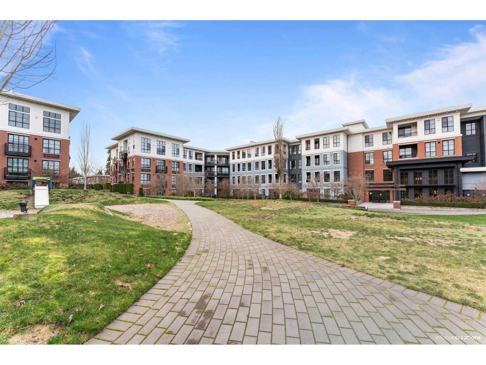 Welcome to Prescott Commons at Harvard Gardens, by award-winning Polygon. This spacious 1-bed/1 bath unit overlooks the quiet interior courtyard and features 9 ft ceilings, an open-concept layout, stone countertops with breakfast bar, gas range, stainless steel appliances and durable laminate flooring. Large windows fill the suite with natural light, and the covered balcony is perfect for morning coffee or evening wind-downs. Residents enjoy exclusive access to The Rowing Club with resort-style amenities: outdoor pool & hot tub, full gym, basketball court, lounge, theatre room and more. All in a superb Morgan Creek location just minutes to Hwy 99, Morgan Crossing & Grandview Corners shopping, restaurants, transit and great schools. OPEN HOUSE JAN 18, SUNDAY 2-4PM (32293110)