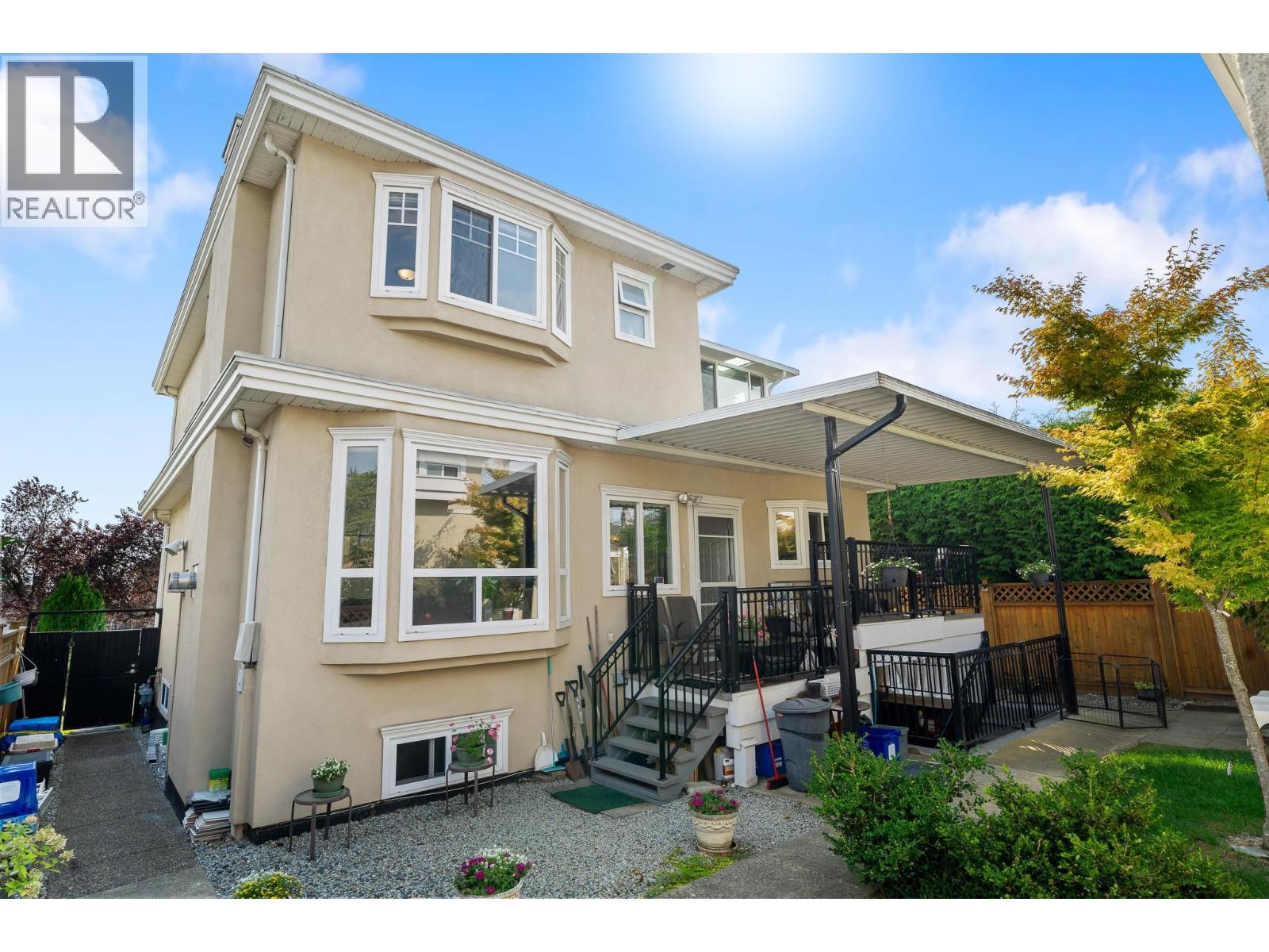 Stunning 3-level residence in sought-after Vancouver South with southern views, offering 7 bedrooms and 6 bathrooms including a 2-storey laneway home with its own living area, kitchen, bedroom and bath. The main house features 3 spacious bedrooms upstairs, each with ensuite, highlighted by a primary retreat with Jacuzzi tub and steam shower. An elegant open-concept kitchen with island, maple cabinetry, granite accents, and premium appliances flows to bright living areas with fireplaces and hardwood flooring. The lower level includes a self-contained 2-bedroom suite with separate entry, ideal for family or mortgage helper. Enjoy a covered deck, private backyard with lane access, & quality touches like built-in vacuum & surround sound, all close to parks, schools, Langara College, & transit. (32293672)