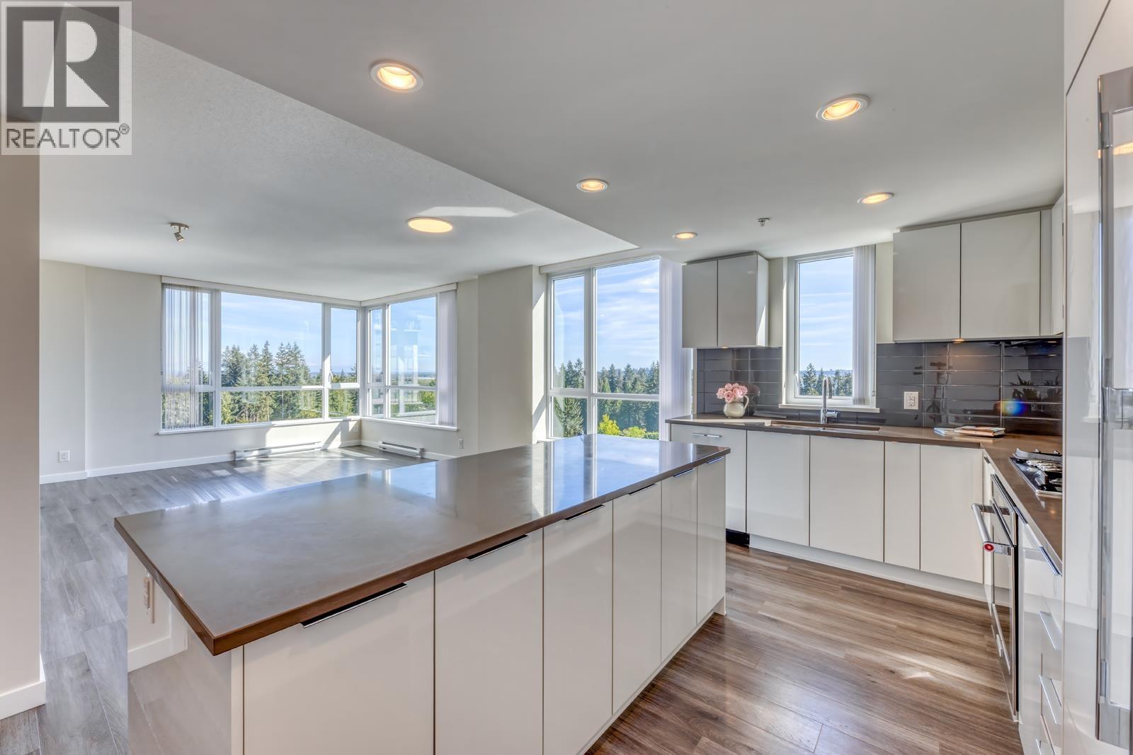 BEAUTIFUL VIEW! Rarely available 3 bed 2 bath 1260 SF SE corner home in the sought-after Windsor Gate Community by Polygon! Boast Open-Concept design, laminate flooring in living space, large picture windows. Gourmet kitchen with Huge Island, Quartz countertops, Gas stove & S/S appliances. South-facing Primary bedroom with Walk-in Closet & 5 PC Dream Ensuite. Spacious 2nd & 3rd bedroom. Side by Side Front load Laundry. Covered Balcony. 1 parking 1 locker. Original Owner, Like New Condition. The building is equipped with EV parking and exclusive amenities. Residents have access to the Nakoma Club, offering an pool, fitness center, and lounge. Located steps from Coquitlam Centre, Lincoln SkyTrain, Town Centre Park and Schools. (32294119)