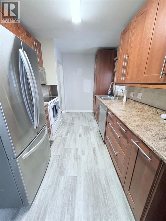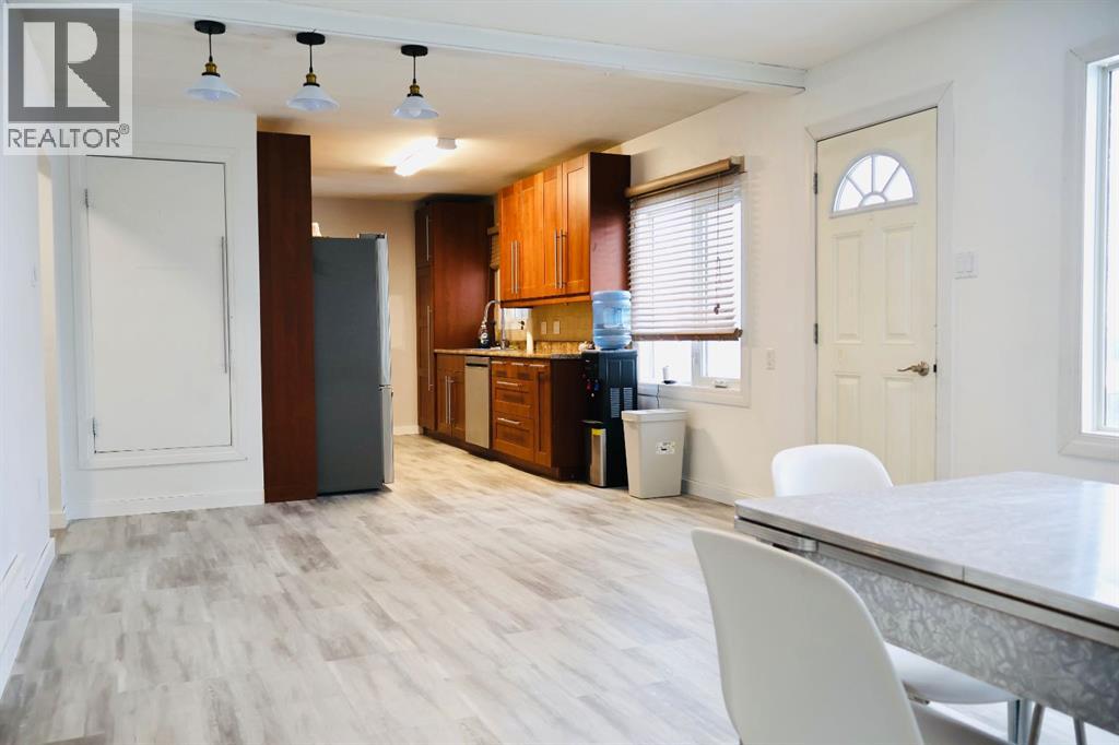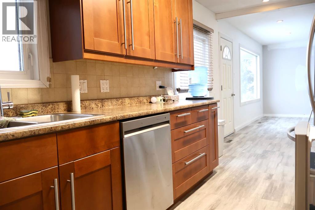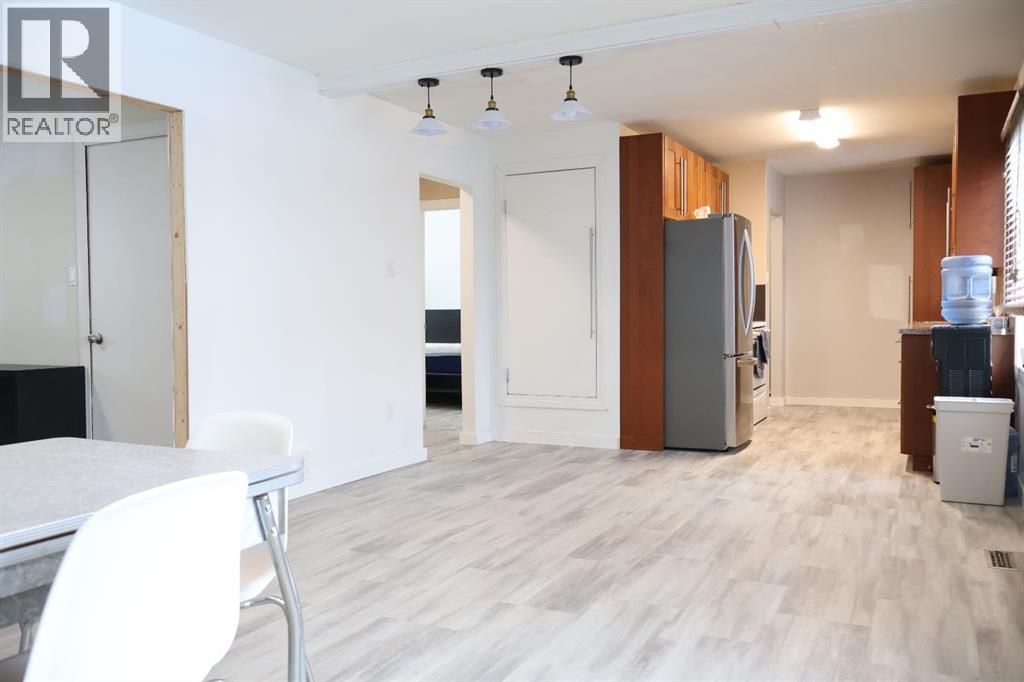 This, ready to move in, 960 sq. ft. built in 1957, blends classic character with modern improvements.The open kitchen and dining area is filled with natural light from bright south-facing vinyl windows (2013), creating a welcoming space for everyday living and entertaining. The kitchen features updated ceiling-height cabinetry with pull-out drawers, laminate countertops, and a large pantry storage closet for added storage. The living room is tucked just off the dining area, providing a cozy and comfortable place to unwind.The main level has been prepped for paint and includes updated vinyl flooring, a 4-piece bathroom, and a bedroom, offering flexibility for main floor living.Downstairs, the fully developed basement offers a cozy family room, two adjoining standard bedrooms, a 3-piece bathroom, and laundry/utility area. Recent improvements include new vinyl plank flooring, updated light fixtures, and some new drywall. Under-stair storage available. Property has new shingles (2024), forced air heating (2004), and central air conditioning (2007).Outside, the private side entry leads into a large enclosed porch with quick access to the backyard. The front yard has been converted to rock for low-maintenance landscaping, while the fully fenced backyard features lawn space, room for a fire pit, and excellent outdoor enjoyment. A small well services lawn and garden watering.The property is complete with a single detached garage with opener and an additional garden shed for extra storage.A well-maintained home offering quick possession, that welcomes the first time buyer or smaller family. Contact your local Realtor to schedule a showing! (31495499)