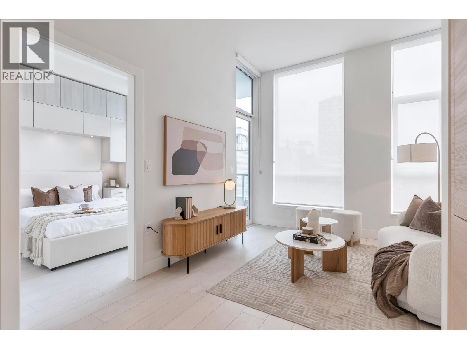 o NEW PRICE o This one is a MUST SEE. Unlike the higher floor plans, this 1 bed + den home features soaring 10.5'+ ceilings in both the living room and bedroom (w/a walk-in closet) creating an open and bright feel well beyond its 565 sq ft. Custom cabinets (by California Closets) in the bedroom and den add both style and smart STORAGE, while integrated, high-end, FULL SIZE appliances bring sophistication to the sleek and practical kitchen. Enjoy exceptional amenities like a state-of-the-art gym, theatre room, co-working space, guest suites, dog wash, workshop, concierge service and so much more. Located in Vancouver´s vibrant River District, with shops, trails, dining, and food trucks just steps away-this is modern, community living at its best. Parking and storage also included. (32294824)