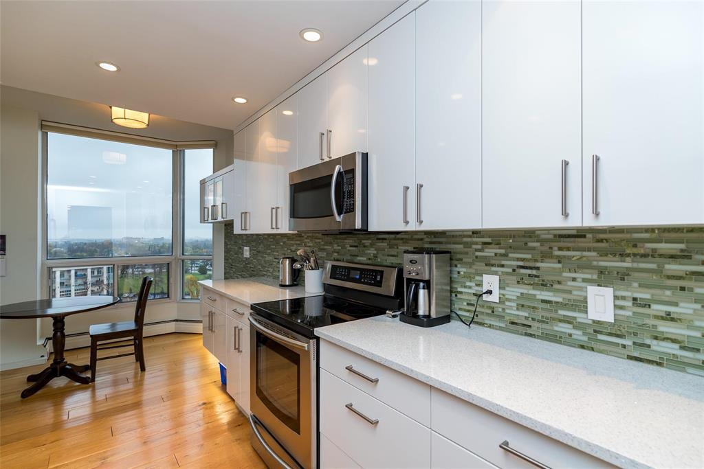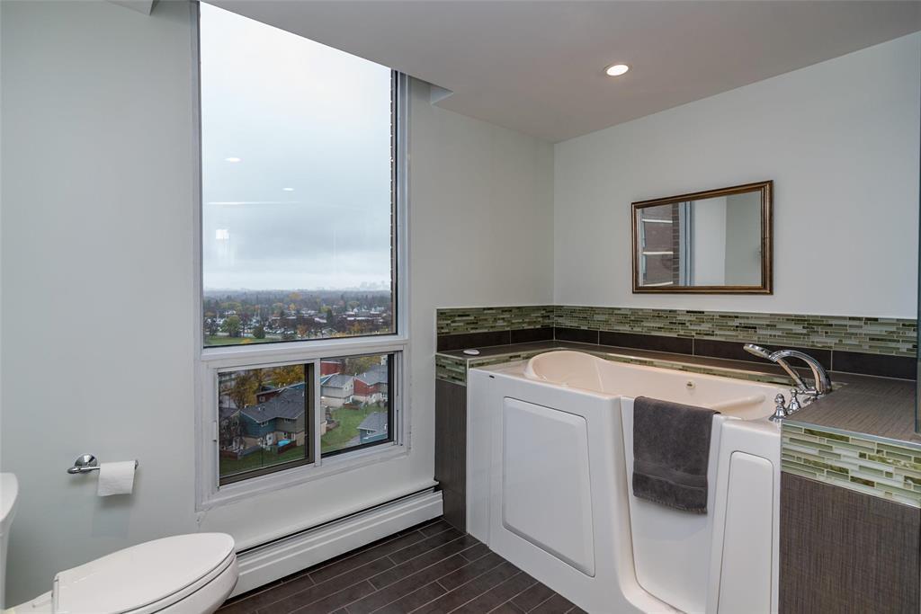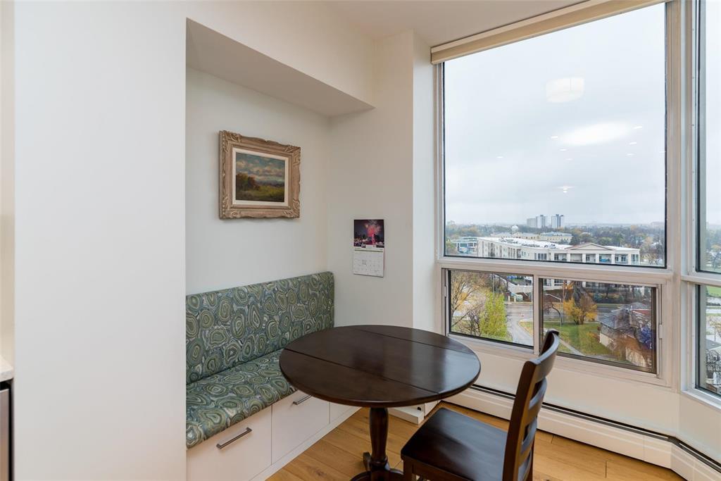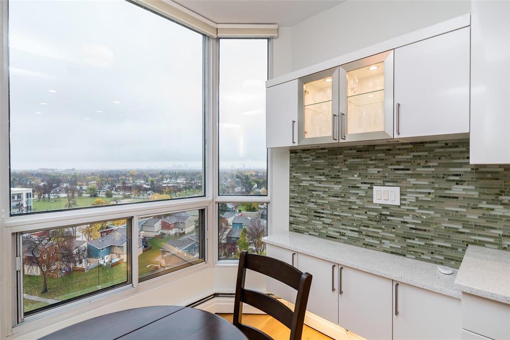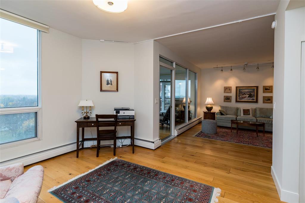 1E//Winnipeg/This is a fabulous condo in this highly desirable building. The condo has been tastefully updated throughout featuring amazing kitchen with high end appliances quartz countertops and spacious and bright breakfast area, The generous primary bedroom offers a deluxe spacious ensuite with walk-in spa tub and large glass walled shower. The main living area is open concept great room style with dining area and living room area entering onto a spacious den and to a four season sunroom. There is a large open balcony off the sunroom both of which offer spectacular views to the west/northwest/Assiniboine Park. All the huge exterior windows have custom Hunter Douglas remote control blinds. There is a an additional 2 piece bathroom and large ensuite laundry room with Miele appliances. There is an underground parking space with valet service if require. This is an absolutely wonderful condo home. Check it out soon you will love it! Contact the listing agent re the condo fee explanation (231818834)