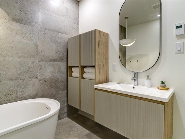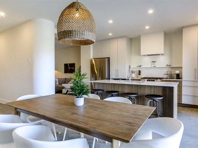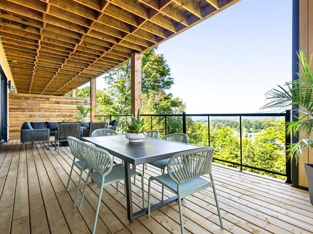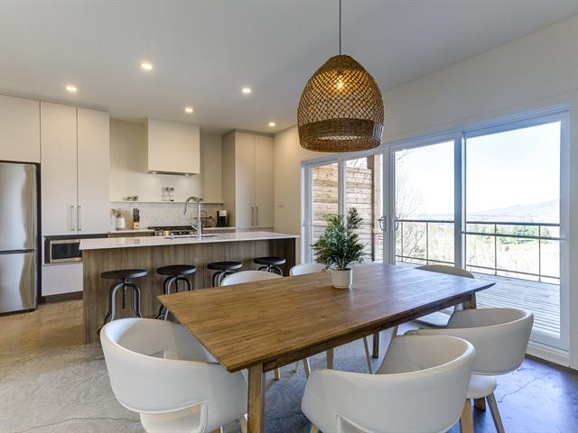 Impeccable ski-in/ski-out condo. This 3-bedroom unit features a distinctive Scandinavian design and has been thoughtfully crafted down to the finest details. Superior comfort with radiant heated concrete floors, a massive terrace, large outdoor storage, and stunning mountain views. Ideal for enjoying Ski Bromont, golf, mountain biking, and Bromont's great restaurants and boutiques with the family. Direct slope access via the Brome trail at the end of a quiet cul-de-sac. Truly turnkey in an exceptional location. (42596511)