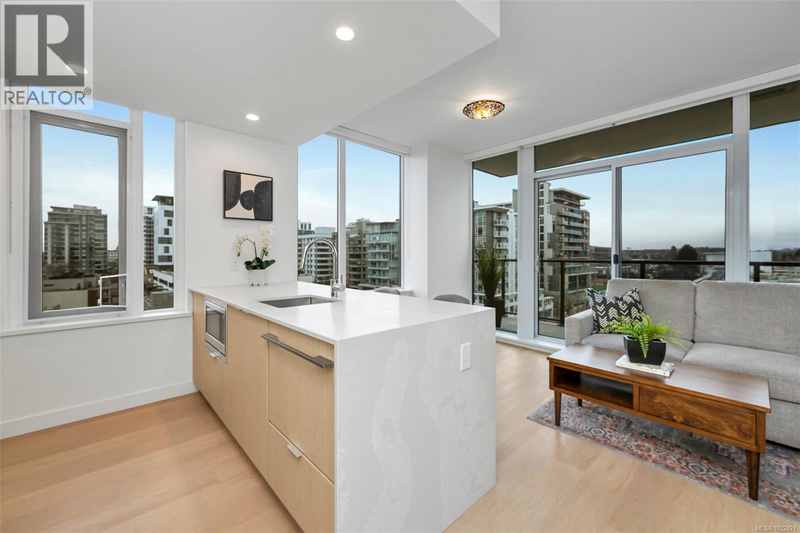 Listed below BC Assessed value! Newly-built in 2024 - 675 sq ft condo - including a 95 Sq Ft balcony on the 7th Floor of the Nest by Chard. Fully air conditioned 1 bed 1 bath luxury corner unit with a huge North-facing balcony. Inside, find an amazing layout with open concept living space and floor to ceiling windows to the North. Enjoy watching sunsets out of the expansive windows to the West. The “U” shaped kitchen is spacious with quartz counter tops/backsplash and has Fisher & Paykel appliances including a panel ready refrigerator, dishwasher, induction stove stop, built-in oven, built-in microwave and ample drawer/cabinet storage. Additional $10K of upgrades including built-in closets and wall unit in the living room. There is full-sized separate storage locker (#60), underground parking (owners renting stall #61), secure bike storage - private pedestal (#57), workout gym, dog wash, MODO. Enjoy the convenience of living in Downtown Victoria and all the amenities it has to offer! (30241435)