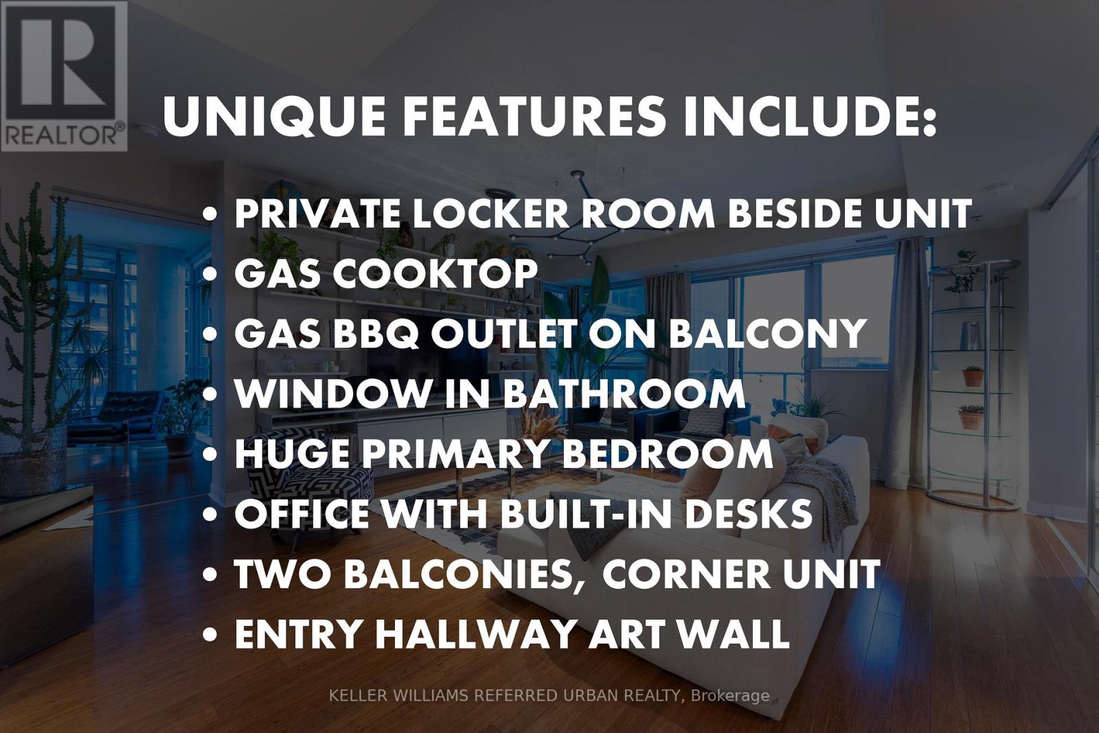 Upgraded designer two bedroom plus den condo at M5V Condos, in the central King West area. Large 1,358 sq ft interior + 195 sq ft over two balconies. ***** So many unique features, such as: private locker room beside unit, gas cooktop, gas bbq outlet, two balconies, bathroom window, huge primary bedroom, office with built-ins, and a nice entry to display all your artwork. ***** Den/office with built-in desks and cabinets. Split bedroom layout (second bedroom used as living space). Primary bedroom with huge walk-in closet, balcony, and a 5-pc ensuite bathroom with natural lighting! Chef's dream kitchen with gas cooktop, Scavolini cabinetry, pantry room, and kitchen island. Vitsoe Custom Shelving (worth $20k), designer light fixture, Napoleon gas bbq, imported entryway mirrors from Italy (worth $15k) are all included. Amenities include: huge gym with free weights and cardio, Peloton studio with bikes and row, guest suite, rooftop terrace and games/party room, 4th floor indoor bike lockers, 24 concierge, and free visitor parking. Lake views in the south, and rare BBQ gas hookup. Central King West is in the heart of all the action: top restaurants, cafes, bars, grocery stores, and walking distance to the Financial District. Close to St. Lawrence Market, Harbourfront, PATH underground access, and public transit, offering convenient city living. (41884860)