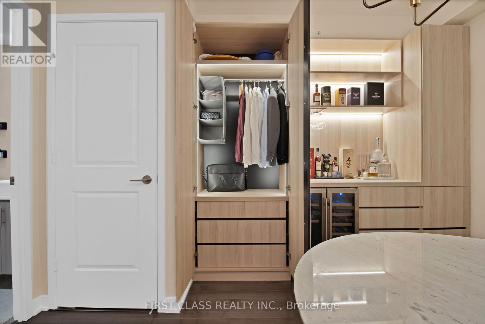 Your Search Ends Here! Stunning South-Facing 690 Sq. Ft. 1 Bedroom + Den (1 parking & Locker) at Backstage Condos in the heart of downtown Toronto! Enjoy breathtaking lake views overlooking the downtown skyline (CN Tower View) in a suite that blends modern upgrades with unbeatable convenience.Modern Kitchen with centre island, S/S appliances & granite counters, and Hardwood floors throughout Spacious bedroom with His & Hers closets. Custom wall units in den perfect for work or storage. Upgraded features: TOTO toilet, custom bar with built-in fridge, upgraded glass in bathroom, and smart automatic blinds (remote included) Unbeatable Location: Direct PATH connection to CIBC Tower 2. Next door to newly renovated Green P parking. Steps to restaurants, bars, St. Lawrence Market, shops, TTC, GO Bus/Train, Union Station & Financial District. Easy highway access. This suite truly offers the perfect balance of luxury, lifestyle, and location. (41885936)