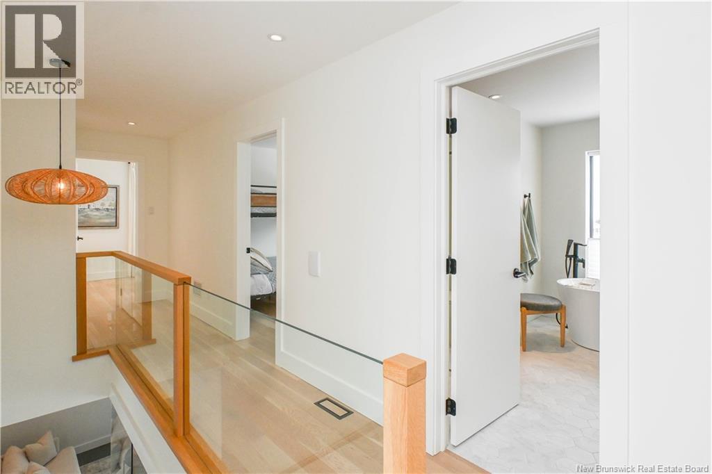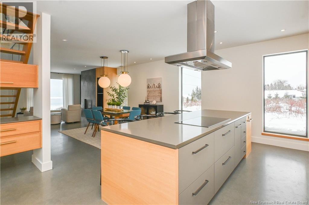EXCEPTIONAL HOME WITH OCEAN VIEWS! Minimalism, elegance, and comfort define this sumptuous Nordic-inspired residence, where every space has been designed to offer a refined and soothing lifestyle. Built in 2020, this unique property enjoys a prime location just steps from Chaleur Bay, in the heart of the vibrant cultural town of Caraquet, close to services, cafés, restaurants, the beach, and the bike path. Its contemporary Scandinavian-influenced architecture showcases clean lines and abundant windows, allowing natural light to fill every corner. Nine-foot ceilings enhance the sense of space from the moment you enter, opening onto a vast welcoming area featuring a powder room and a laundry room. The sumptuous open-concept kitchen integrates elegantly with the living room, creating a warm and distinctly modern atmosphere. Upstairs, the primary bedroom with walk-in closet, two additional bedrooms, and a full bathroom form a thoughtfully designed living space that combines comfort, elegance, and functionality. High-end finishes reflect exceptional attention to detail: polished concrete heated floors, an architectural wood and glass staircase, and a sophisticated kitchen featuring premium cabinetry and quartz countertops. A luxurious and welcoming interior, combining design, comfort, and ocean views. (29351905)