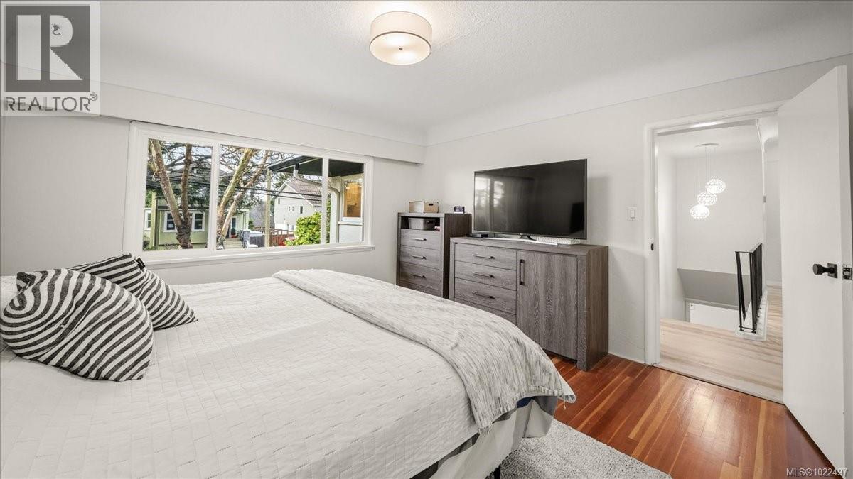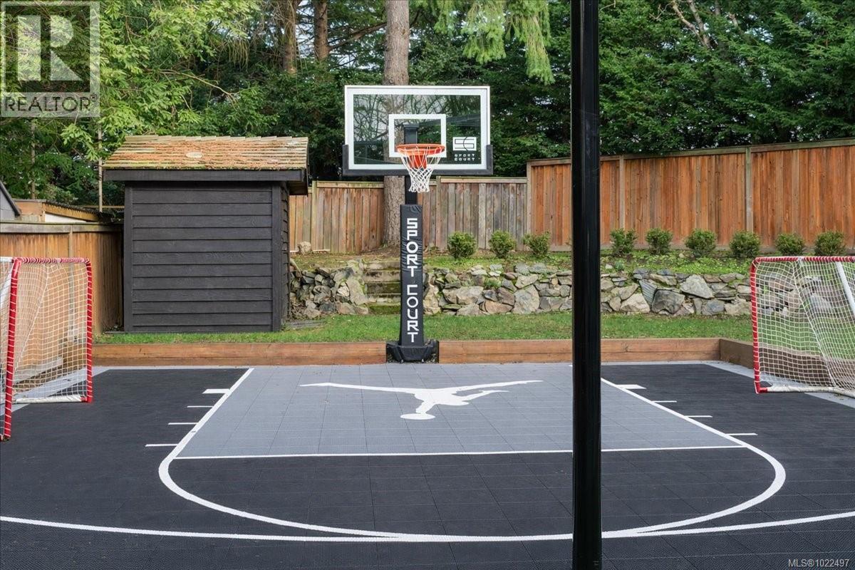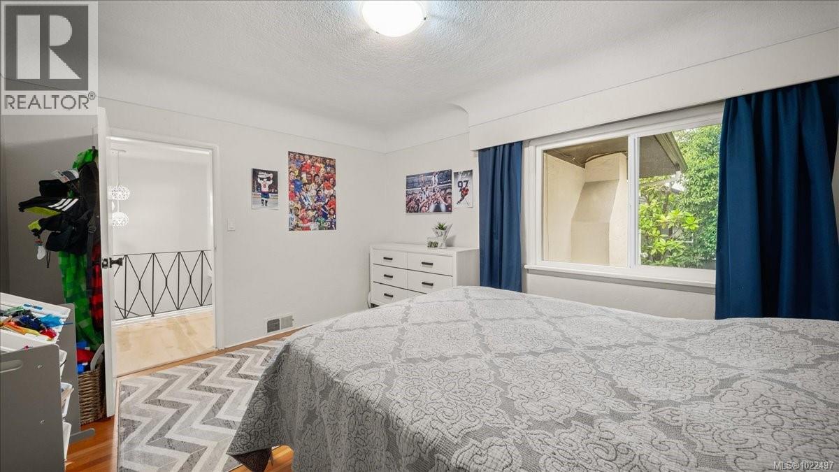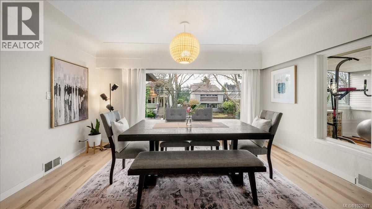 Set back and elevated on a generous 9000 sq ft lot, this updated 1949 residence offers five bedrooms and three bathrooms in a prime Oak Bay location. Significant improvements include a new roof, heat pump w/ AC, full interior and exterior repainting, gutters and downspouts, and all new appliances. Bright interiors are enhanced by large vinyl thermopane windows and updated lighting throughout. The main level features a comfortable living and dining area with oak flooring, a versatile sunroom, a spacious eat in kitchen, two bedrooms, and a full bathroom. The lower level provides a separate garden entrance, family room, three additional bedrooms, and two three piece bathrooms including an ensuite, all completed with permits through Oak Bay. Outdoor upgrades include new landscaping, a private backyard sport court, new front yard fencing, and updated garage door mechanicals. An attached double garage with workshop space and ample off street parking complete this well located home. (30242721)