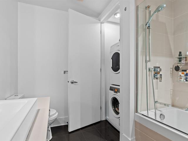 Stunning corner condo in prestigious Solano Phase 5, ideally located in the heart of Old Montreal. This bright 3½ features a bedroom, an office converted into a walk-in closet, a full bathroom, and a sleek open-concept kitchen. Enjoy a private balcony, storage space, and all appliances included. Luxury amenities include indoor and outdoor pools, spa, fitness center with yoga studio, sauna, rooftop terrace, and guest suite for events. Well-managed building with strong contingency fund and reasonable condo fees. Prime location near shops, dining, metro and views of clock tower . A rare opportunity offering lifestyle, elegance and value. (47485294)