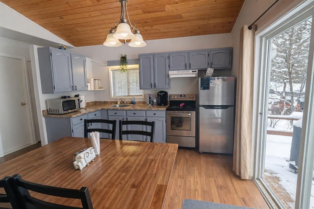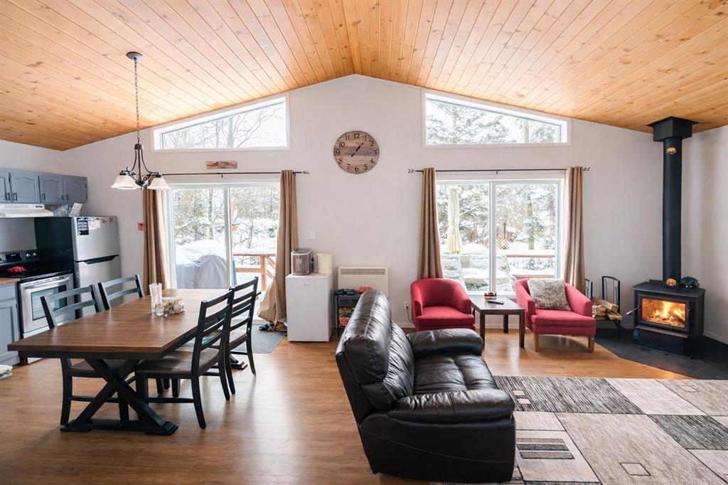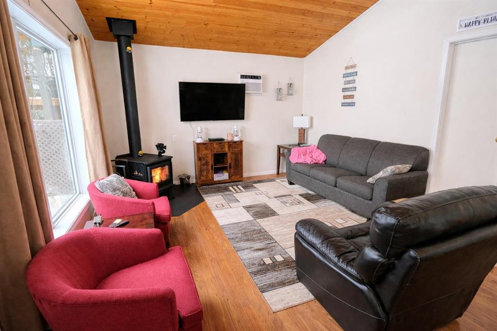 R28//Lac Du Bonnet/Tucked into a peaceful setting, this charming year-round cabin offers the perfect blend of comfort, functionality, and outdoor living. Set on two lots (#35 & #37), the fully furnished home is filled with natural light, featuring an inviting eat-in kitchen with a large window overlooking the surrounding landscape. The cozy living room is anchored by a professionally installed 2024 wood stove, perfect for relaxing after a day outdoors. Enjoy summer evenings at your private dock and quiet mornings surrounded by nature. The cabin includes two bedrooms and one bathroom, along with key updates such as a new hot water tank, new water pump, new wood shed, and an additional 8x10 storage shed. Sewer and water are serviced by a holding tank located in the crawl space. A move-in-ready retreat ideal for year-round enjoyment. Located in Riverside Camp. (231820605)