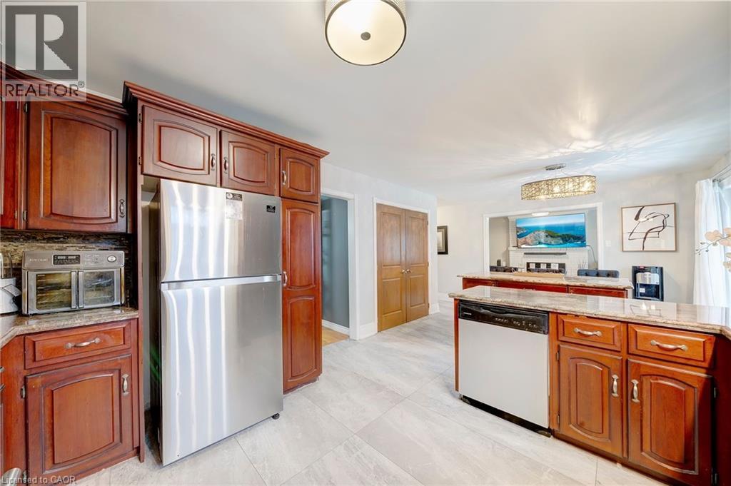 Welcome to this very spacious and versatile 2-storey home located in a highly desirable neighbourhood on the West Hamilton Mountain. Offering exceptional flexibility, this property features 4+1 generously sized bedrooms, two kitchens, and newer basement finishes, making it ideal for growing families, extended family living, or in-law suite potential. The main level boasts updated flooring, kitchen with granite counters, large seated moveable island, creating a warm and modern feel while providing ample space for everyday living and entertaining. The well-designed layout offers generous principal rooms, abundant natural light, and functional flow for busy households. The finished lower level includes a second kitchen and additional bedroom, offering excellent flexibility for multi-generational living, guests, or future income potential. Whether accommodating extended family or creating a private living space, this home adapts to your needs. Roof, eaves, windows, furnace and a/c are all NEW or newer. Close to shopping, restaurants, LINC and Highway access--don't miss out on this opportunity! (70016608)