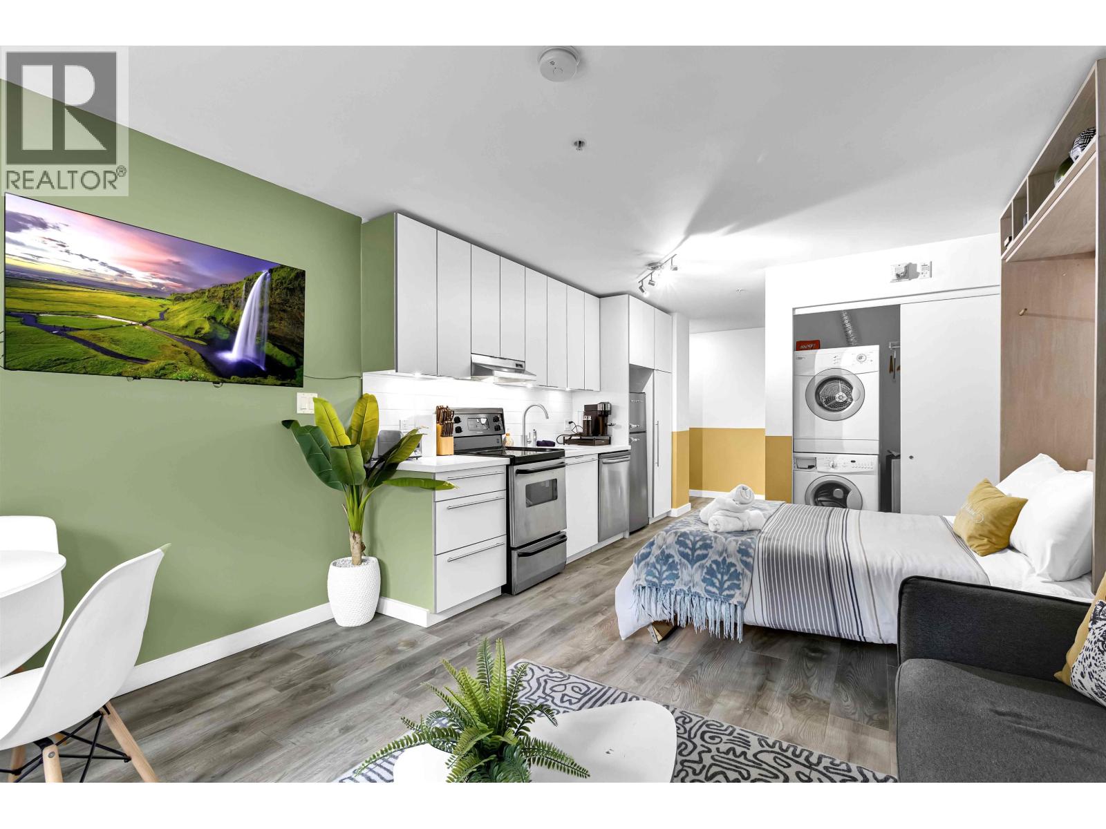 Welcome to 21 Doors in the heart of Gastown - an ideal opportunity to get into the market or generate rental income. This concrete building was fully modernized in 2011 and allows short-term rentals including Airbnb offering excellent flexibility. The suite features an efficient open layout with in-suite laundry, stainless steel appliances, ample storage, and a spacious bathroom. Extensively renovated in May 2023 with new flooring, fresh paint, stylish wallpaper, new bathroom vanity, and upgraded lighting and fixtures throughout. Fully furnished with premium new furniture included making this a true turn-key opportunity. Enjoy the communal inner courtyard with BBQ and dining area. Steps to Gastown´s top restaurants, cafés, shopping and urban living at your doorstep. Book your showing now! (32298107)