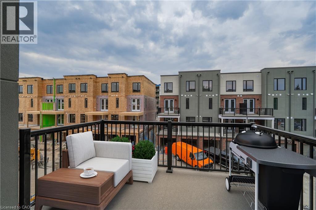 Your very own Urban Oasis living at Spur Line Common Condos. This 3 bedroom Executive modern townhome with garage is located in Midtown KW steps away from the Spur Line Trail, ION light rail and transit bus stops. Conveniently located in the heart of Waterloo allowing residents easy access to plenty of lifestyle amenities-walking distance to shopping, restaurants and many entertainment options. Over 1800 sq ft of bright, spacious living with over $22k in builder upgrades-cabinetry, flooring & lighting. The main floor features a large living area, dining room with sliders to private terrace, a chef inspired kitchen all with 9'ceilings. The white kitchen has quartz counters, S/S appliances and is a great space to entertain with a large island & breakfast bar! Plenty of room for a work from home office space. Main floor laundry with stackable washer/dryer and a 2 pc bathroom. The upper floor has 3 generously sized bedrooms. The primary bedroom is complete with a walk in closet, ensuite bathroom and a second private terrace. Parking for 2 vehicles- including the private garage with garage door opener and direct access. (70017956)